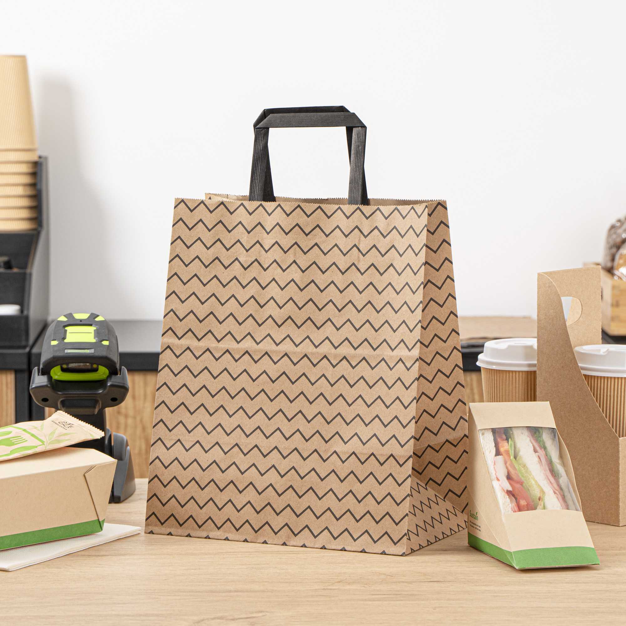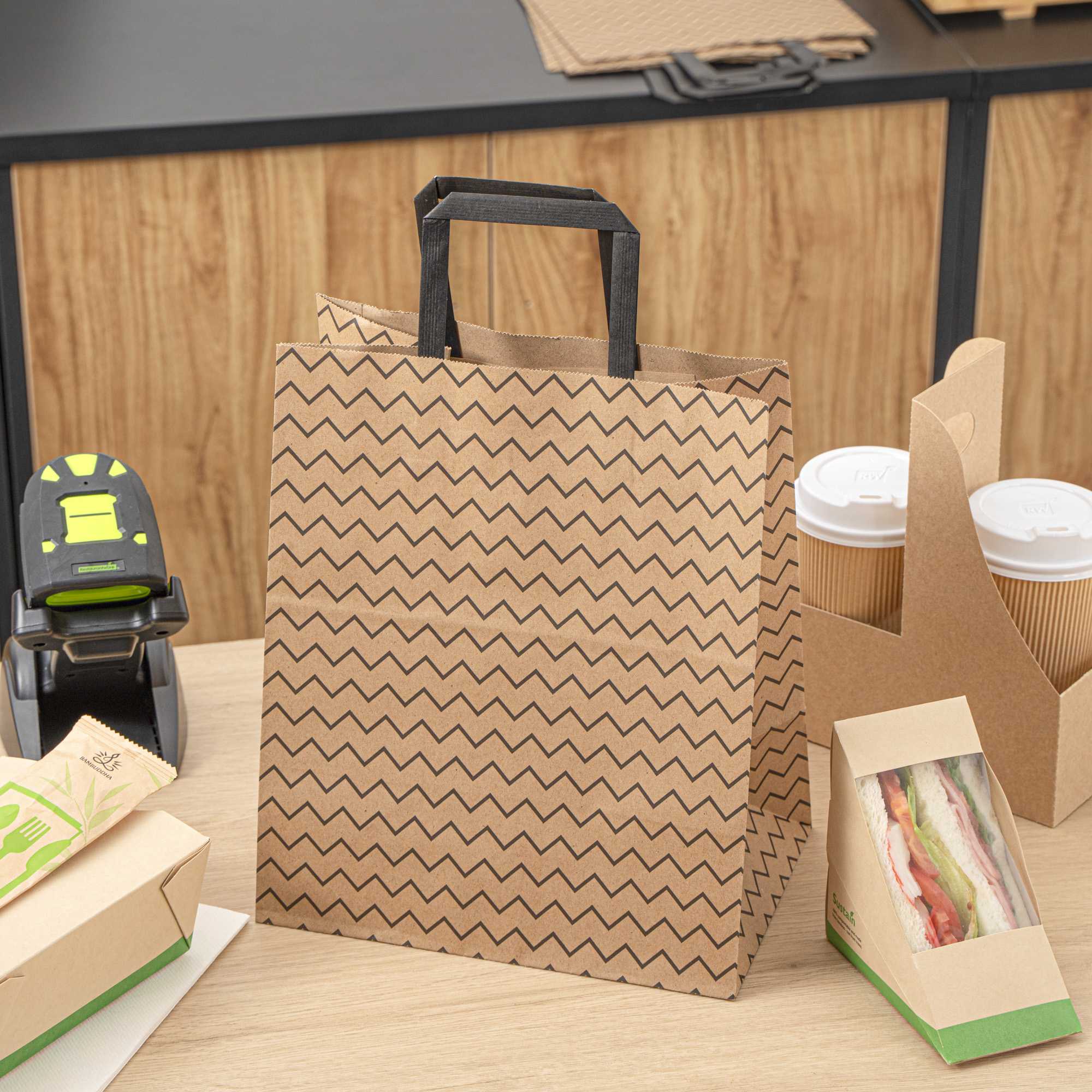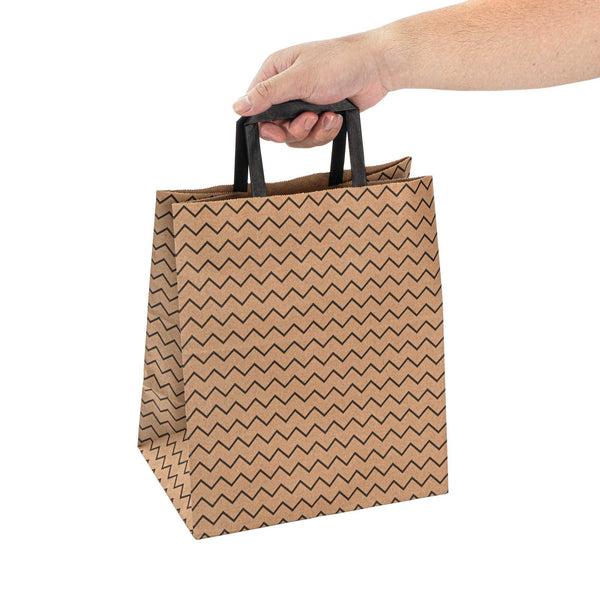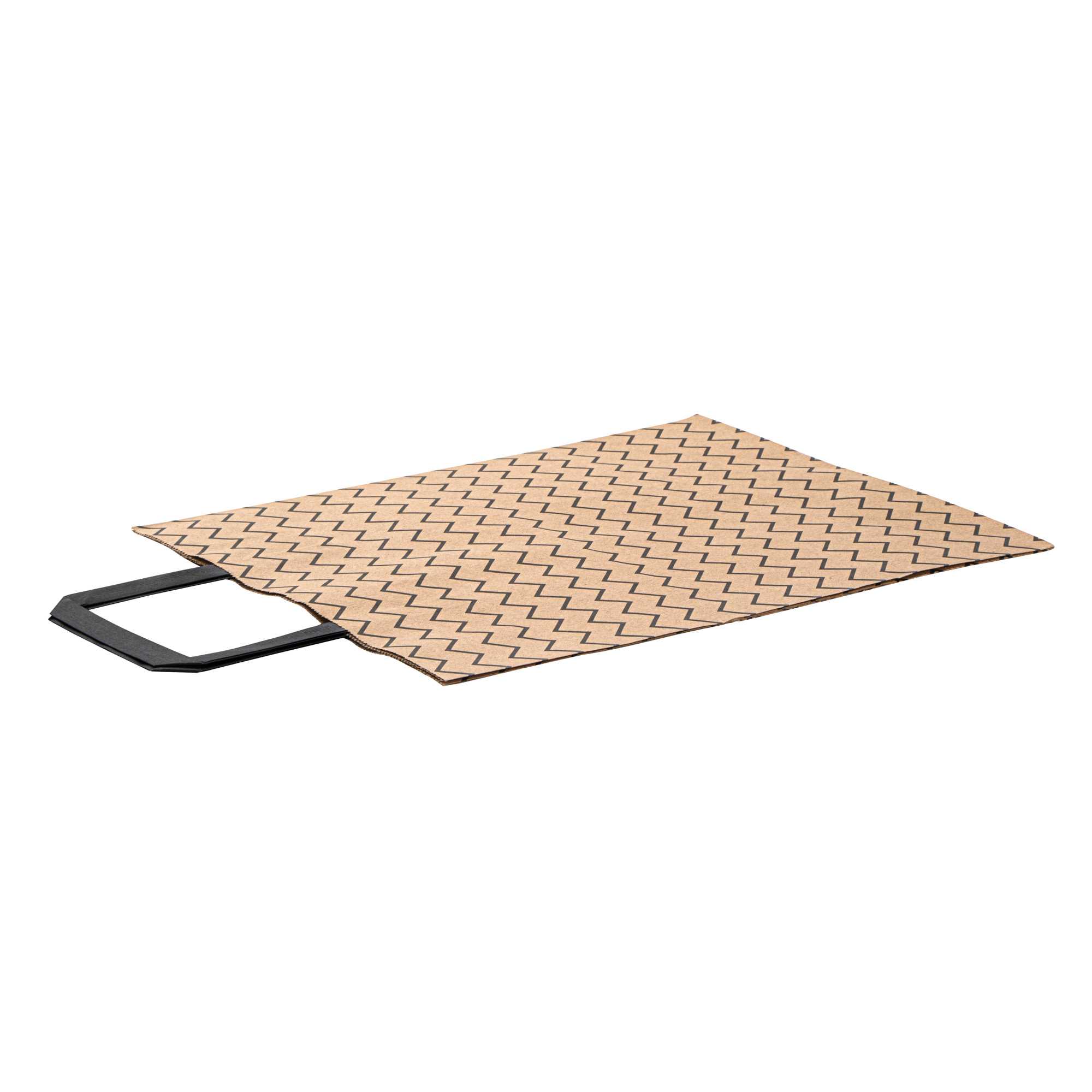 KRAFT PAPER MEDIUM RETAIL BAG - BLACK ZIG ZAG, WITH HANDLES