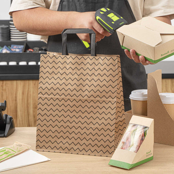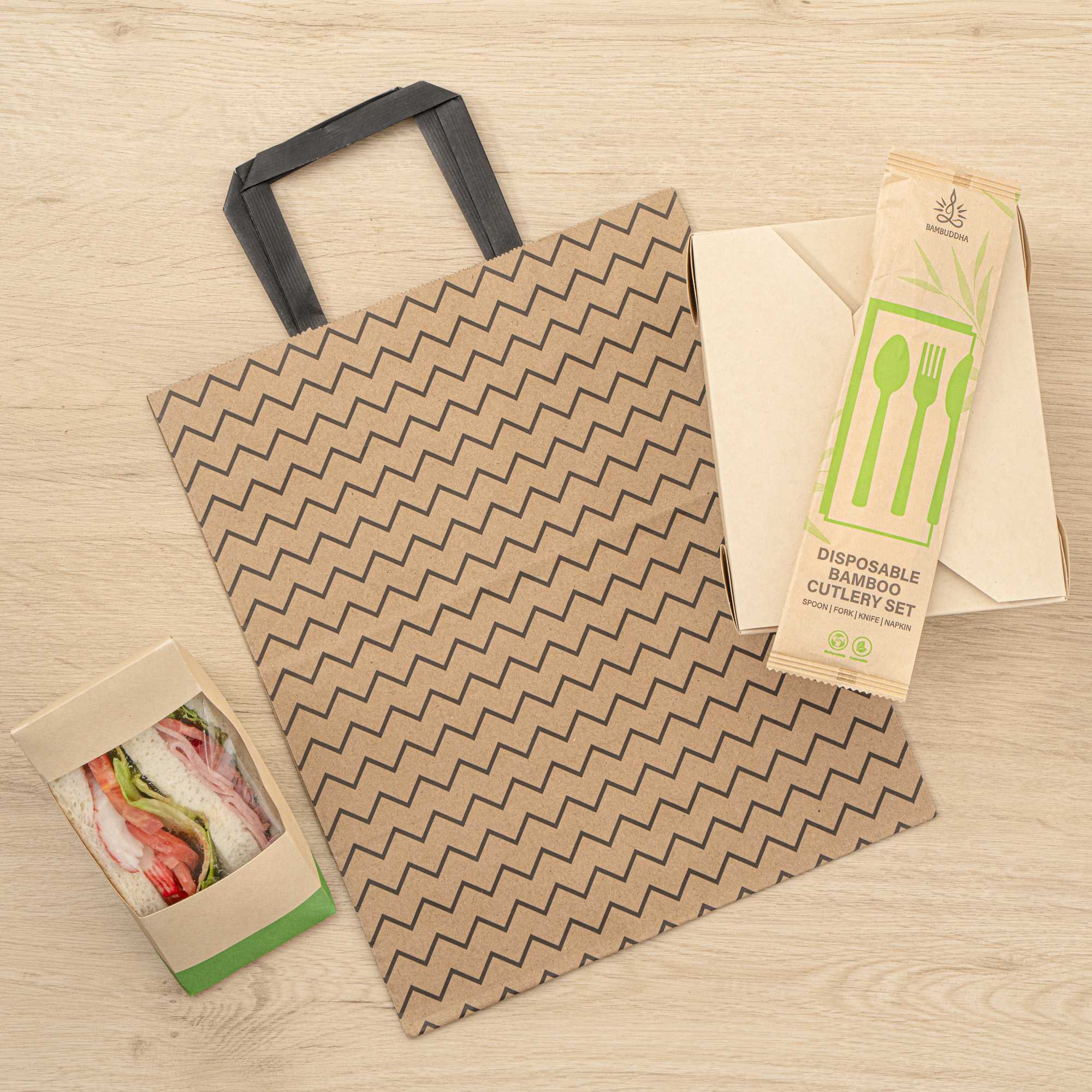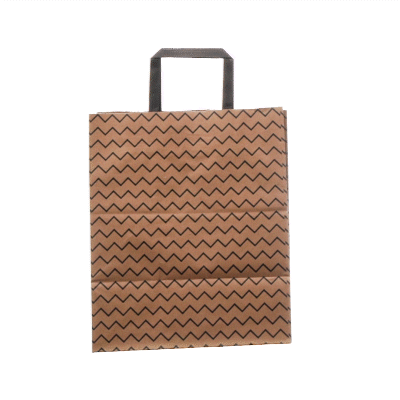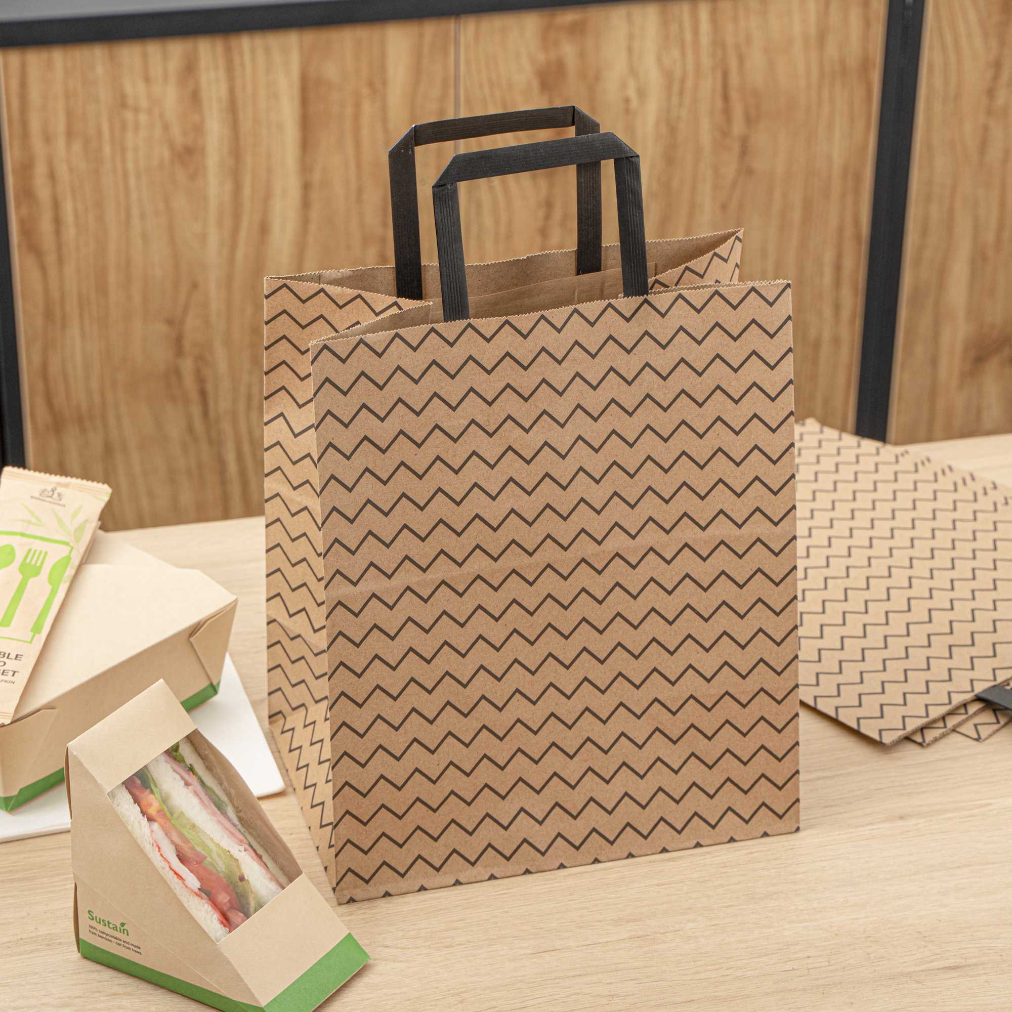 KRAFT PAPER MEDIUM RETAIL BAG - BLACK ZIG ZAG, WITH HANDLES