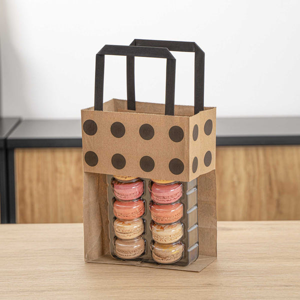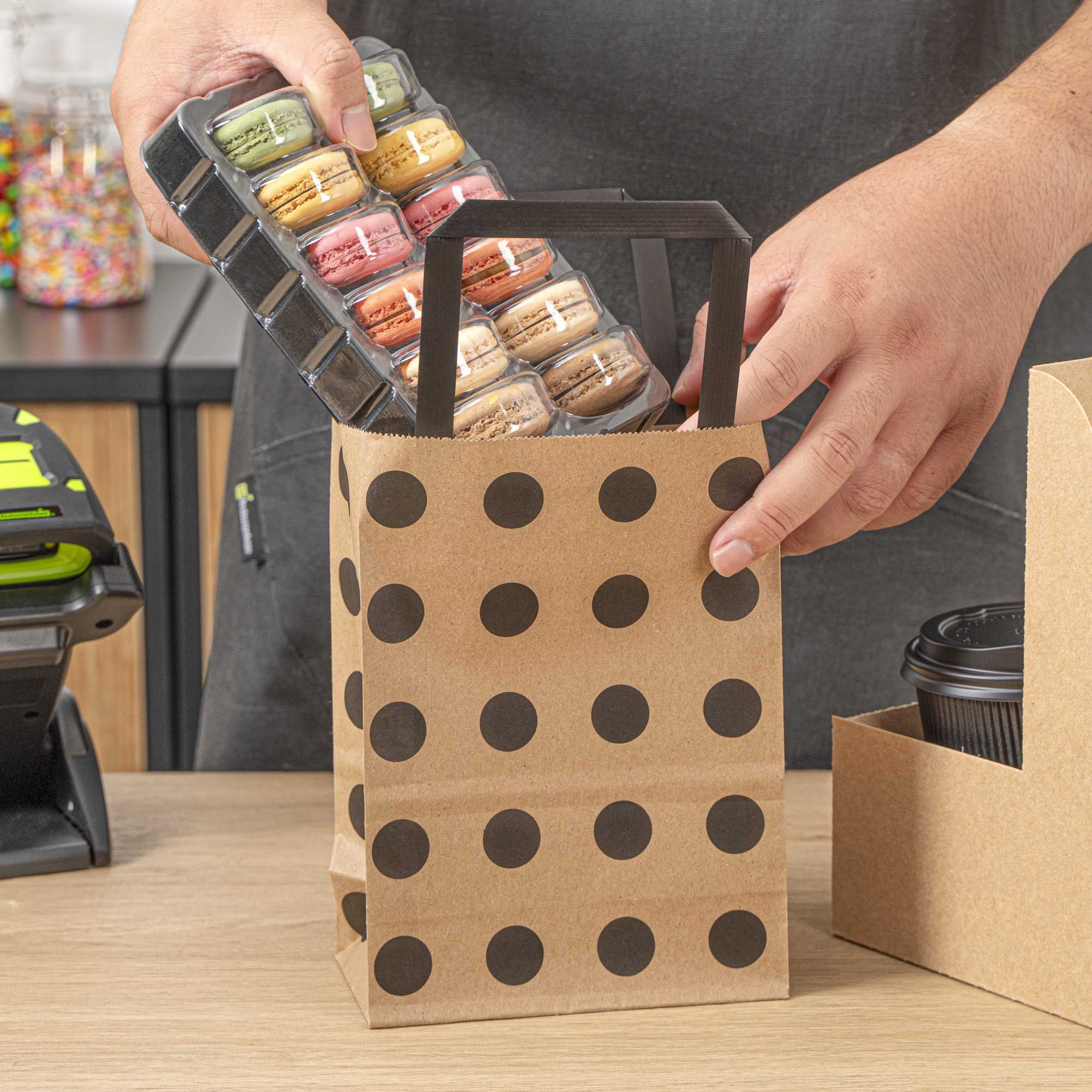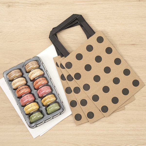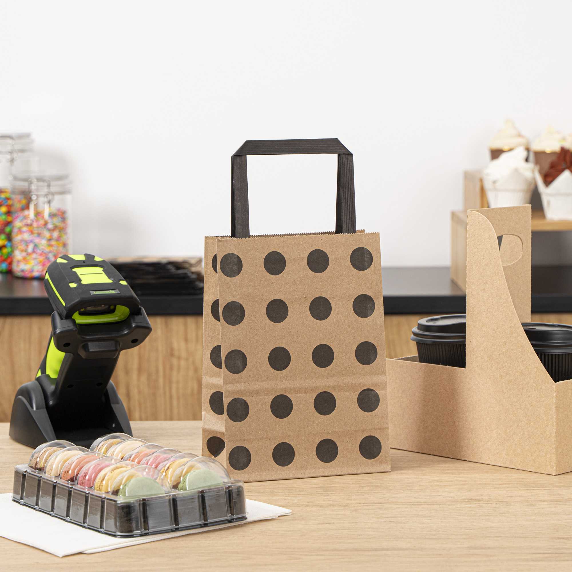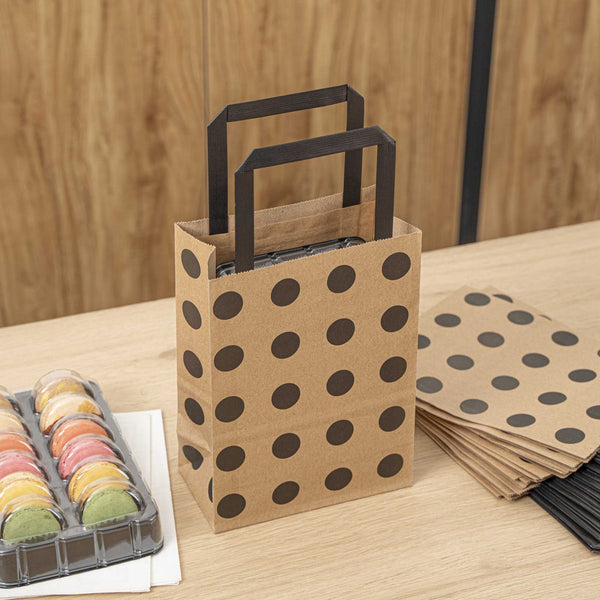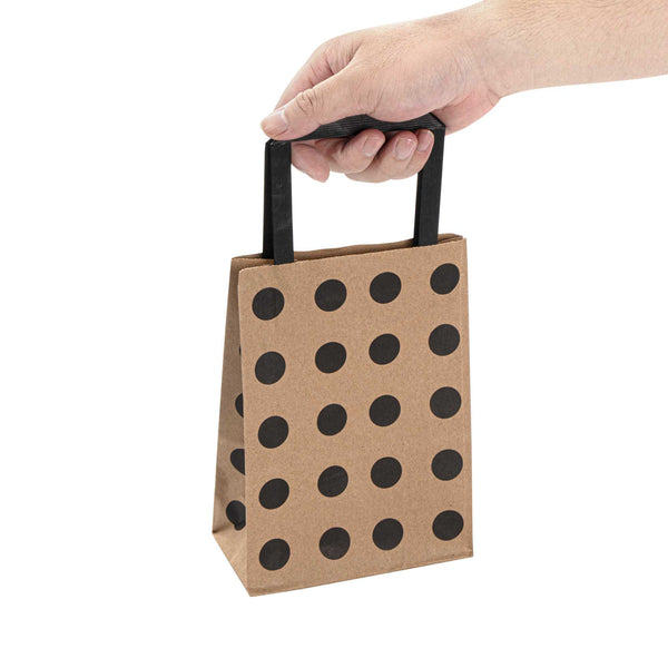 KRAFT PAPER SMALL RETAIL BAG - BLACK POLKA DOT, WITH HANDLES