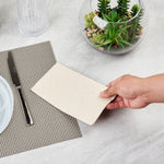 Accentuate your dinner tables using our Saving Nature Rectangle Kraft Paper Dinner Napkins. These dinner napkins are made of premium kraft paper, making them durable. Plus, these kraft paper napkins do not tear easily, even when used to remove liquid mess. These 2-ply napkins for restaurant ensure cleaning any mess with a single wipe. To elevate the style of your tables, these paper serviettes are embossed with snowflake designs. These paper napkins with design can be disposed of easily after use, as they are recyclable and commercially compostable. The kraft tone of these cocktail napkins blends with any tablescape. To save space on your tables, these napkins for dinner come in 1/8 fold. These rectangle paper napkins measure 17 inches in length by 15 inches in width when unfolded and 7.5 inches in length by 4.25 inches in width when folded. Shipped in a 150 count box.