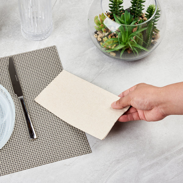 Accentuate your dinner tables using our Saving Nature Rectangle Kraft Paper Dinner Napkins. These dinner napkins are made of premium kraft paper, making them durable. Plus, these kraft paper napkins do not tear easily, even when used to remove liquid mess. These 2-ply napkins for restaurants ensure cleaning any mess with a single wipe. To elevate the style of your tables, these paper serviettes are embossed with snowflake designs. These paper napkins with design can be disposed of easily after use, as they are recyclable and commercially compostable. The kraft tone of these cocktail napkins blends with any tablescape. To save space on your tables, these napkins for dinner come in 1/8 fold. These rectangle paper napkins measure 17 inches in length by 15 inches in width when unfolded and 7.5 inches in length by 4.25 inches in width when folded. Shipped in a 3,000 count box.