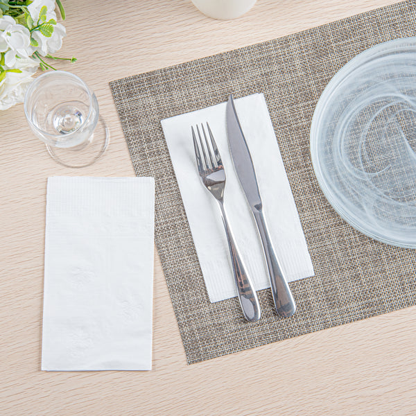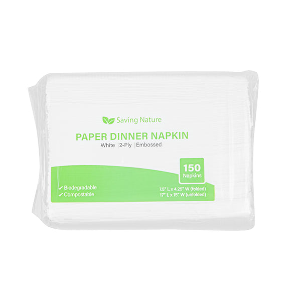 Enhance your dining experience with versatile options. Saving Nature Extra Thickness Dinner Napkins offer a 2-ply design that ensures effective cleaning with one wipe, making them indispensable for formal dining and catering events. The 1/8 fold design maximizes table space, allowing for efficient settings and storage, perfect for banquet halls and upscale restaurants aiming to impress. With a pristine white finish, these disposable dinner napkins blend seamlessly with any restaurant decor, ensuring a polished and professional appearance. Measuring 17 inches long by 15 inches wide when unfolded, these napkins provide ample coverage and durability for any dining setting. Elevate your foodservice operations with these white paper napkins that combine elegance and practicality. Each order includes 3000 Saving Nature Extra Thickness Dinner Napkins.