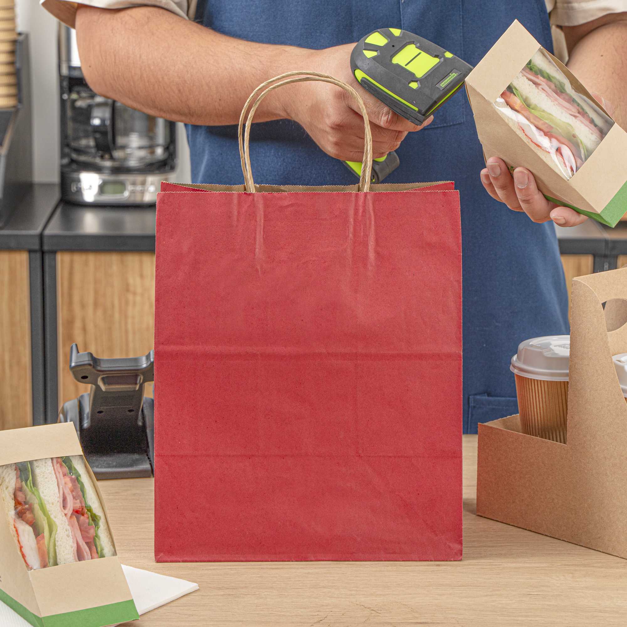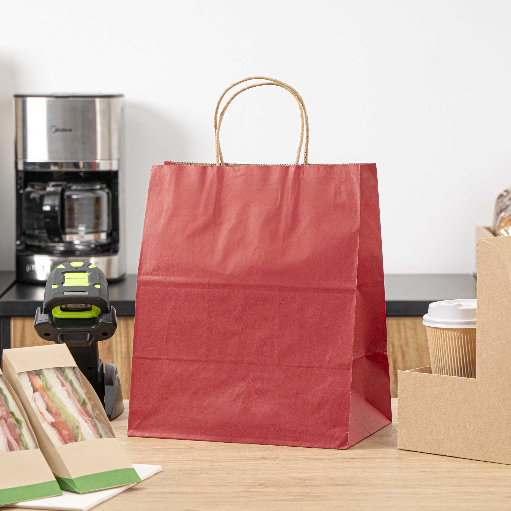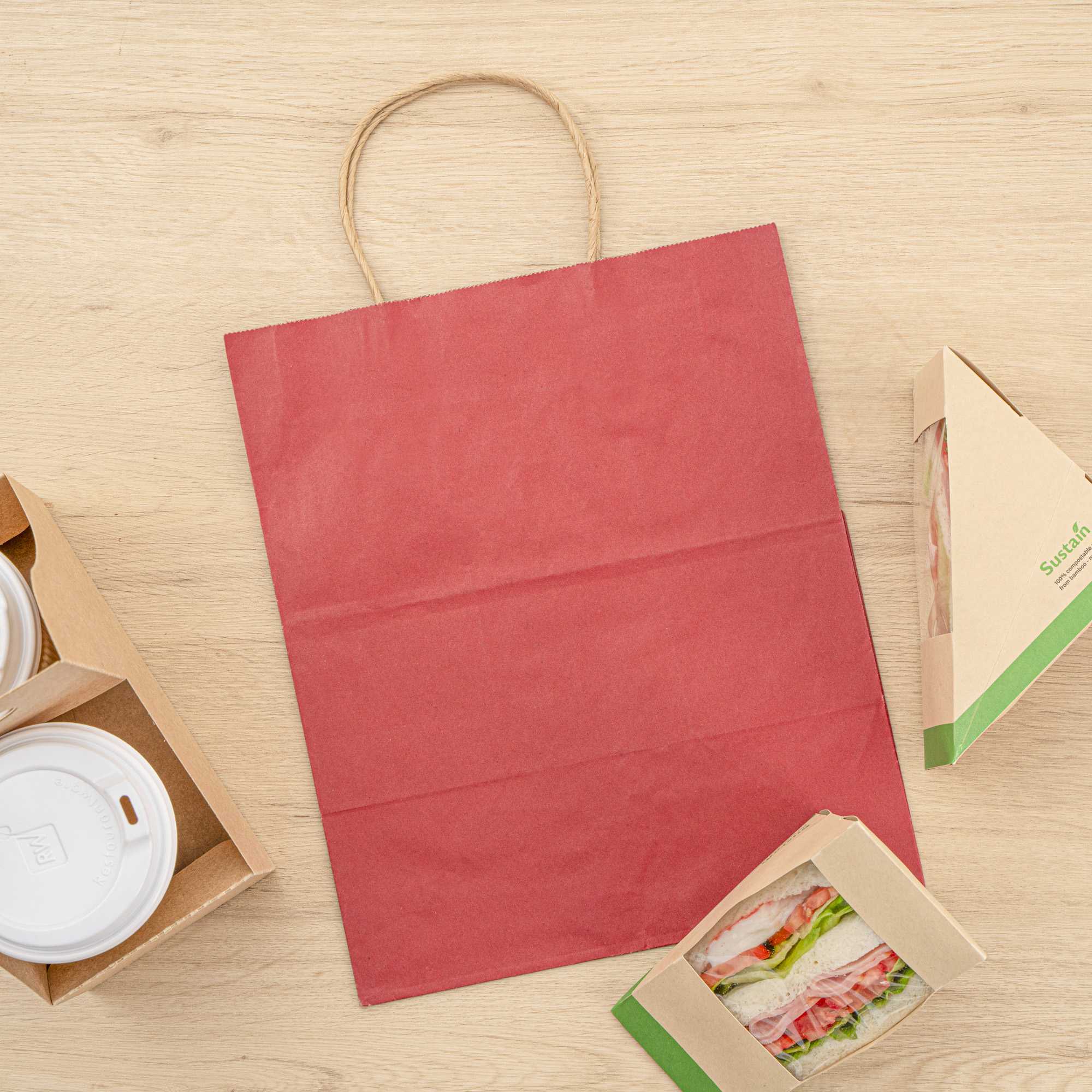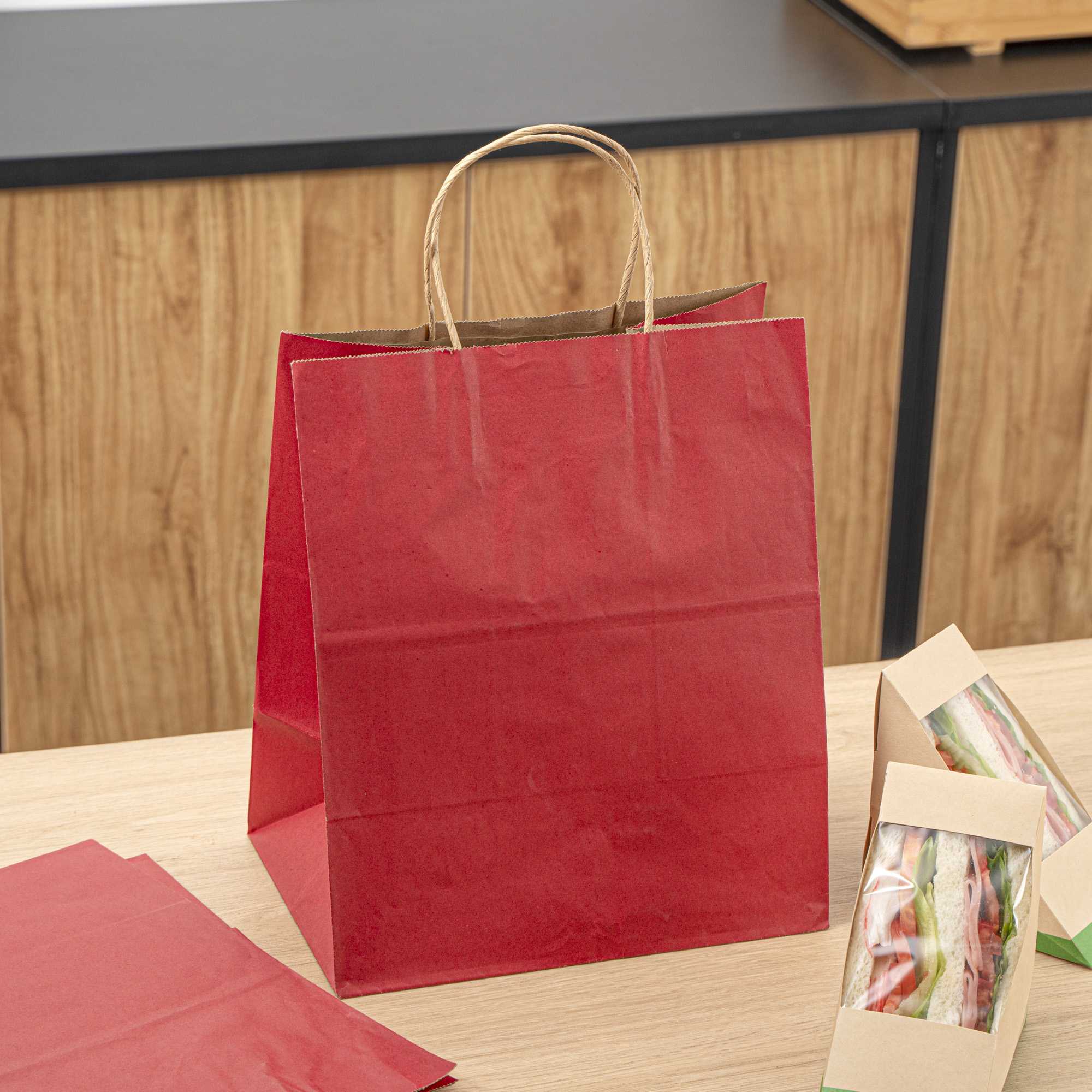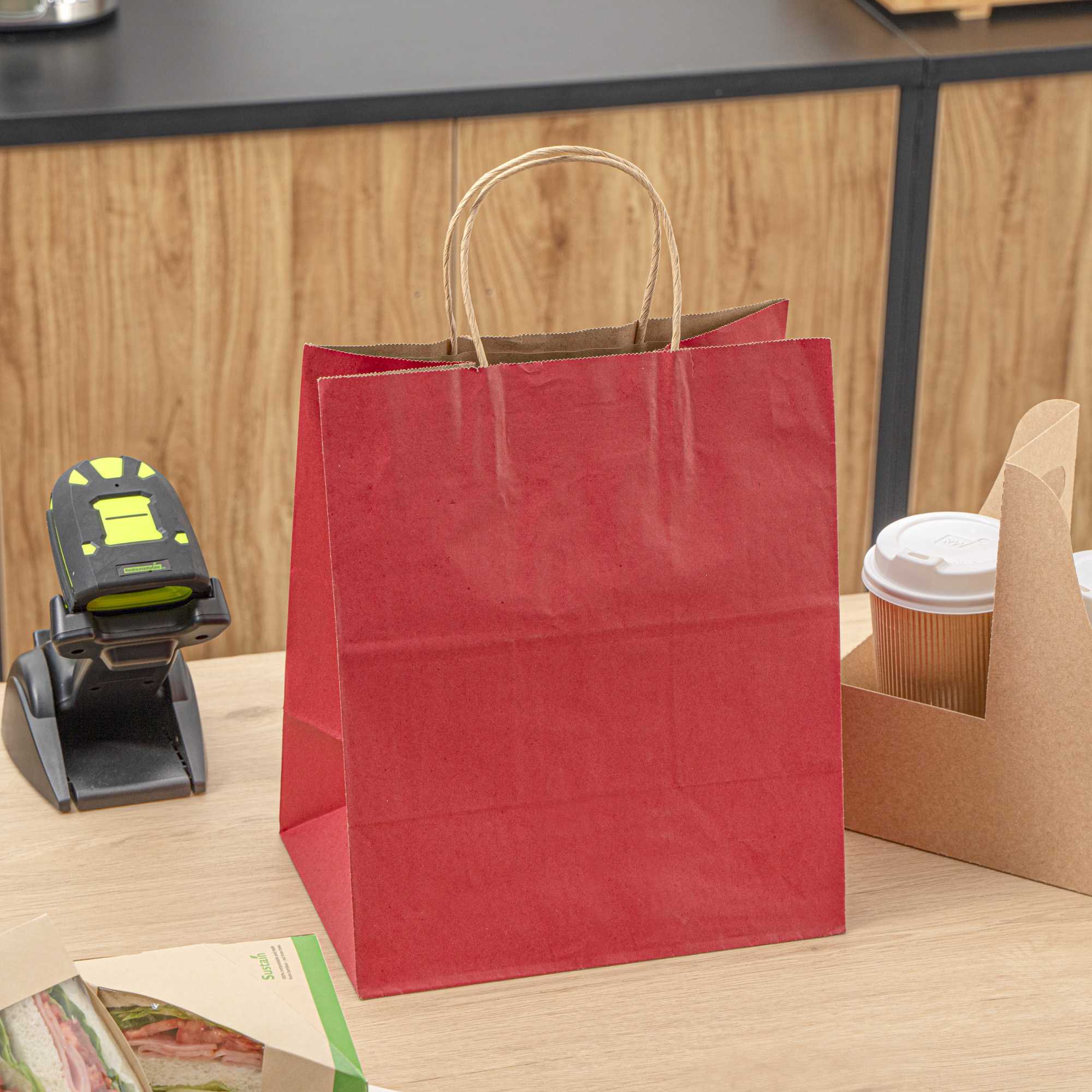 RED PAPER MEDIUM RETAIL BAG - WITH HANDLES