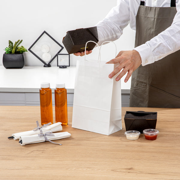 Introduce a touch of elegance to your retail packaging with our Saving Nature White Paper Retail Bags. Designed to offer superior strength and durability, these paper bags are capable of carrying a variety of items. These recyclable paper shopping bags are equipped with sturdy, easy-to-hold handles, ensuring a comfortable carrying experience for your customers. With a unique stand-open structure, these paper bags for shopping offer an easy packing and quick access to products. Ideal for grocery stores or boutiques, these disposable paper grocery bags come with a flat bottom design that provides stability and avoids items from falling over. The fresh white finish of these paper gift bags enhance the presentation of your products, making them more appealing to customers. These commercially compostable white paper bags measure 7.75 inches in length by 4 inches in width by 11.5 inches in height, to provide ample space for a variety of items. Sold in a 100 count box.