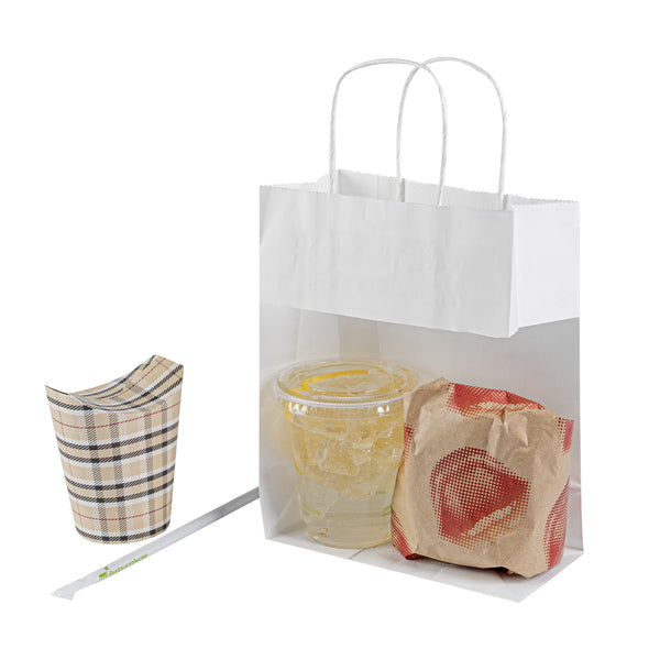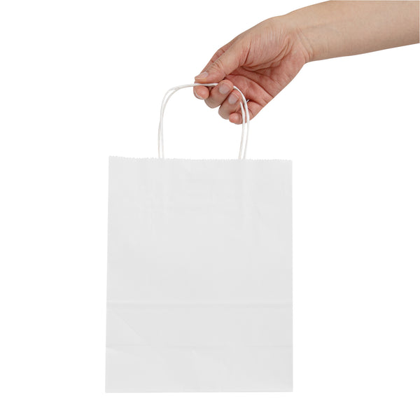 Experience the convenience of our Saving Nature White Paper Retail Bags, ideal for your packaging needs. The thick and durable design of these recyclable paper gift bags ensures they can handle a variety of items without tearing. Easily carry your purchases in these commercially compostable white paper bags with the aid of the comfortable handles, designed with user convenience in mind. Designed with a sturdy structure, these commercially compostable paper shopping bags feature a stand-open design that facilitates easy packing and access. The flat bottom design of these paper bags for shopping provides stability, stopping your items from toppling over. The clean, white finish of these bags gives them a sleek and professional look, suitable for packing a variety of items. Despite their lightweight nature, these disposable paper bags offer ample space, measuring 7 inches in length by 3.25 inches in width by 8.5 inches in height. Sold in a 100 count box.