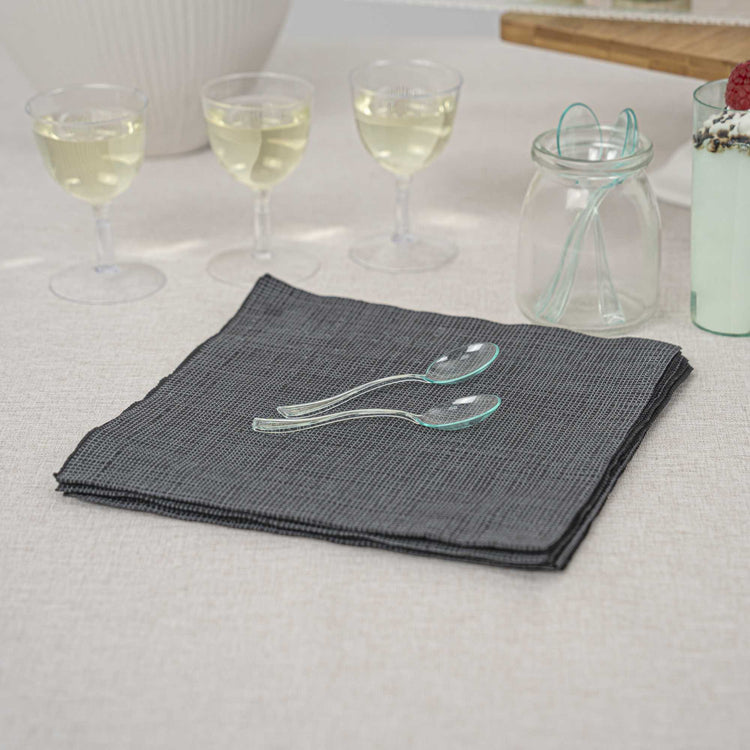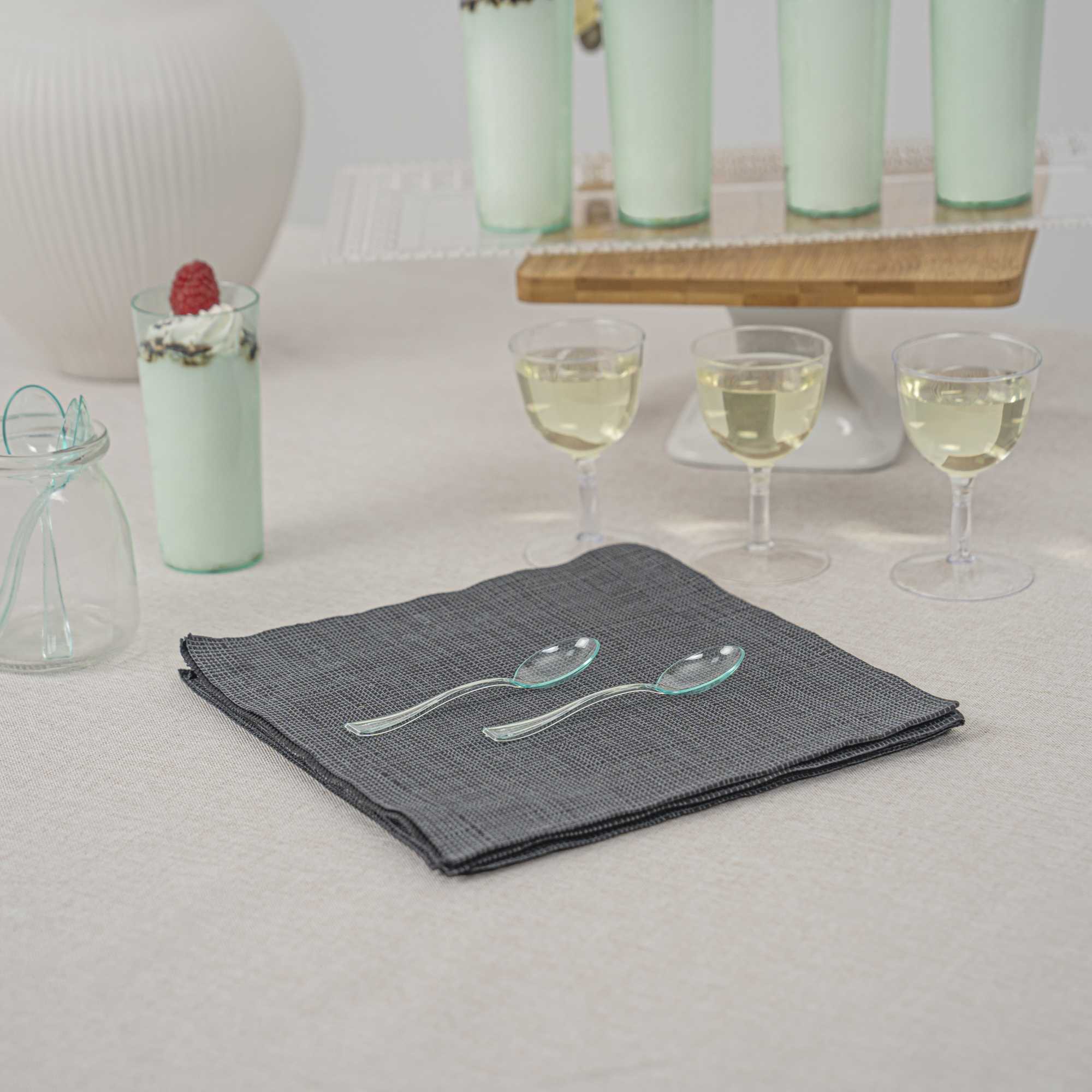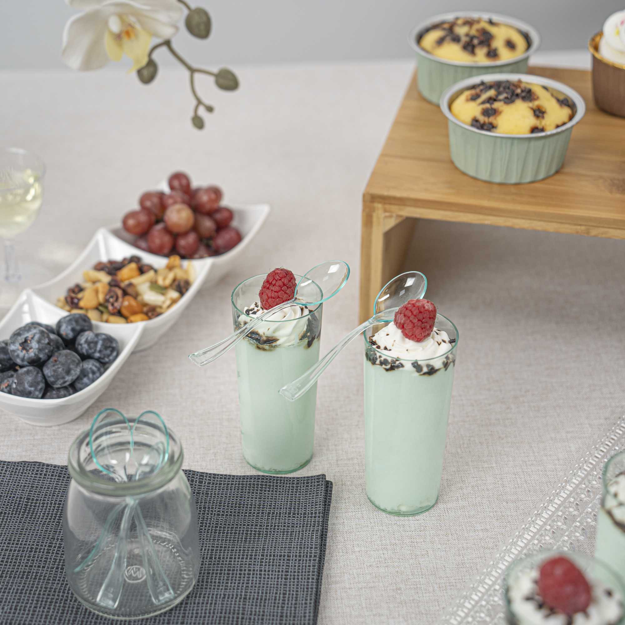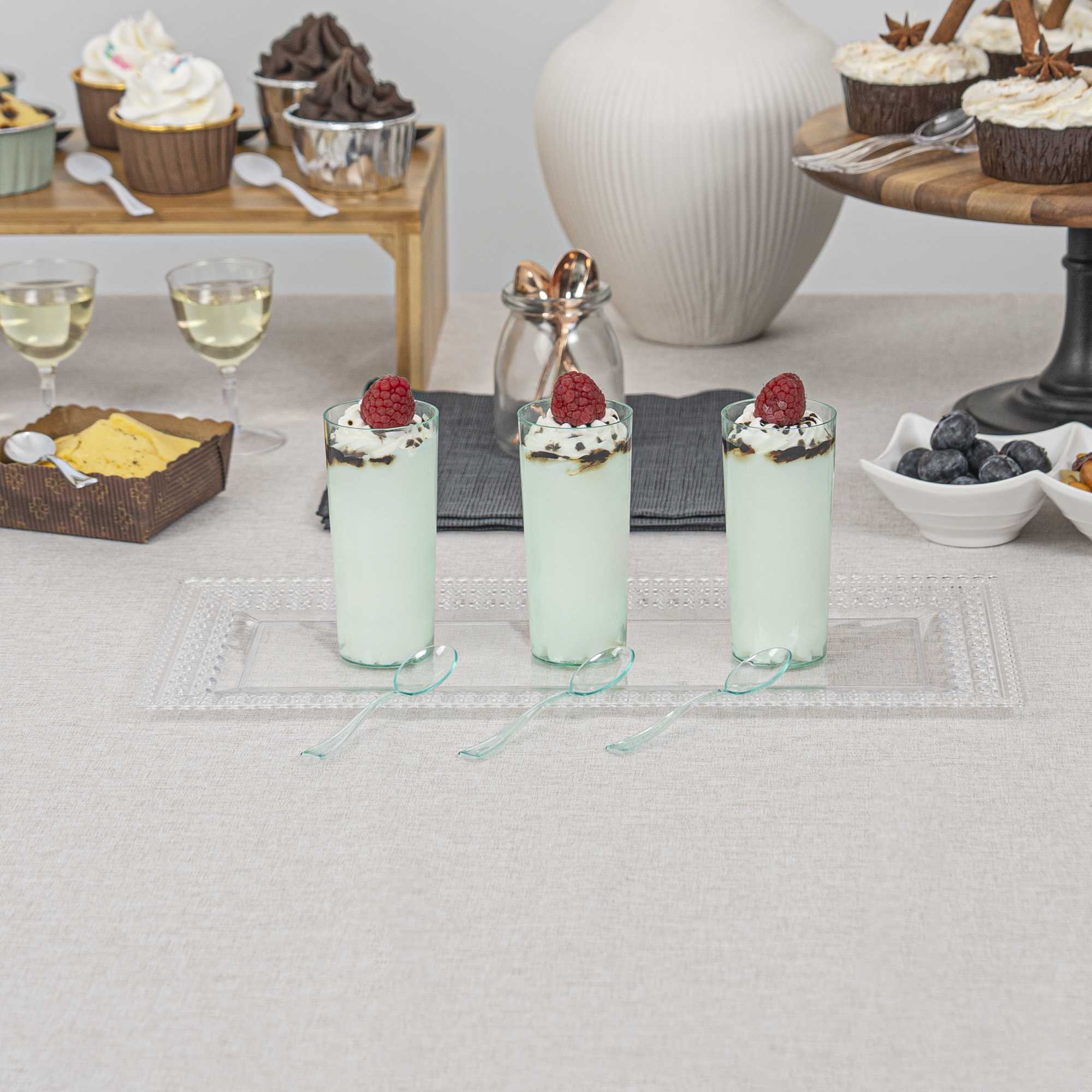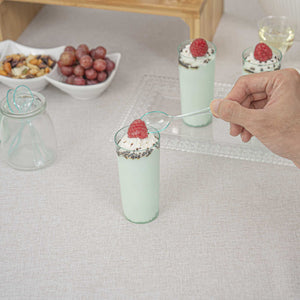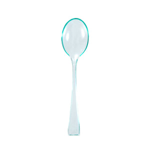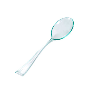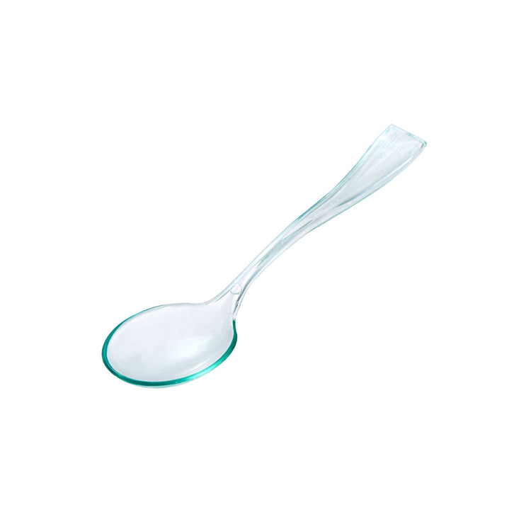 Perfectly blend functionality with sustainability using our Mini Serve Seagreen Plastic Mini Spoons. Featuring a glass-like translucent finish, these seagreen plastic spoons are designed to effortlessly enhance the presentation of your tantalizing dishes. Made of premium plastic, these premium mini spoons are recyclable. With durable construction, these disposable plastic spoons are sturdy and do not break while holding hefty bite-sized treats. Ideal for busy cafes and food establishments, these sturdy spoons can be disposed of after use and require no cleaning. Each spoon for mini desserts measures 4 inches in length. Sold in a 500 count box.