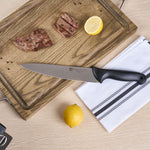 These chef knives with razor-sharp blade are crafted from single piece of high-carbon German steel, ensuring precision cuts and long-lasting sharpness. Built to withstand the toughest kitchen tasks, offering unmatched durability.