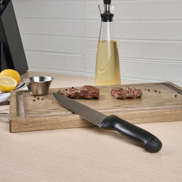 These premium kitchen knives are sold in 8-piece set or individually. Whether you are experienced in the kitchen or simply just getting started, these steel knives fulfill all your slicing and dicing needs.
