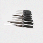 These premium kitchen knives are sold in 8-piece set or individually. Whether you are experienced in the kitchen or simply just getting started, these steel knives fulfill all your slicing and dicing needs.