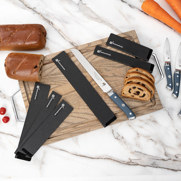 With its sleek black finish, these knife blade sleeves perfectly complement the rest of your kitchen knives. Add a stylish touch to your culinary collection!