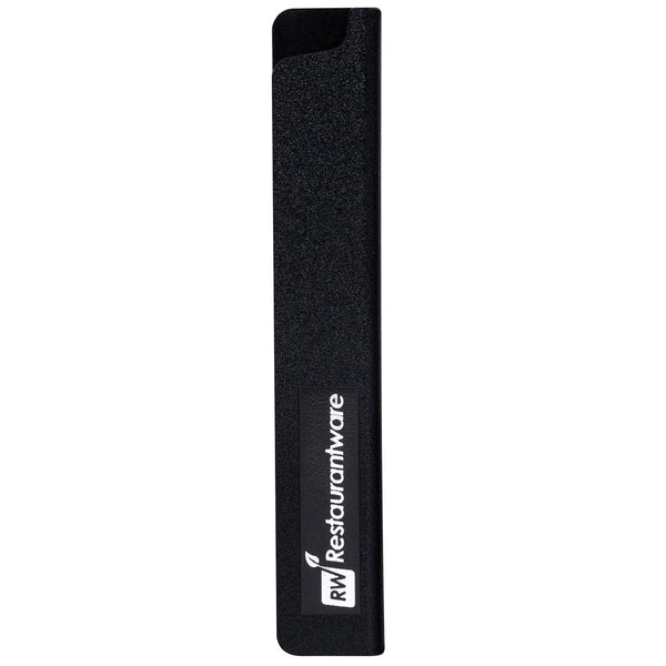 Encourage safety in your commercial kitchen using our Sensei Black Plastic Knife Blade Cover / Guard. Designed to fit our Sensei Steak Knife (RWT0102), this plastic knife cover is great for properly storing your knife before food preparation. This knife blade sleeve features a felt-lined interior that is gentle on blades and protects them from scratches or rust. Made with durable, plastic, this knife blade protector offers a safe way to keep your kitchen knife covered. Featuring a cut-proof construction, this plastic knife cover is ideal for protecting the blade against possible damage during storage. To perfectly complement the rest of your kitchen knives, this knife blade sleeve has a black finish. To easily clean your knife blade protector, simply hand wash after use. This blade cover measures 6 inches in length by 1 inch in width and can safely cover the blade of a knife less than 6 inches long. Sold in a 1 count box. Our collection of Sensei knives are available and sold separately.
