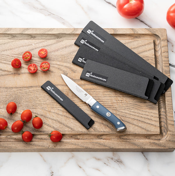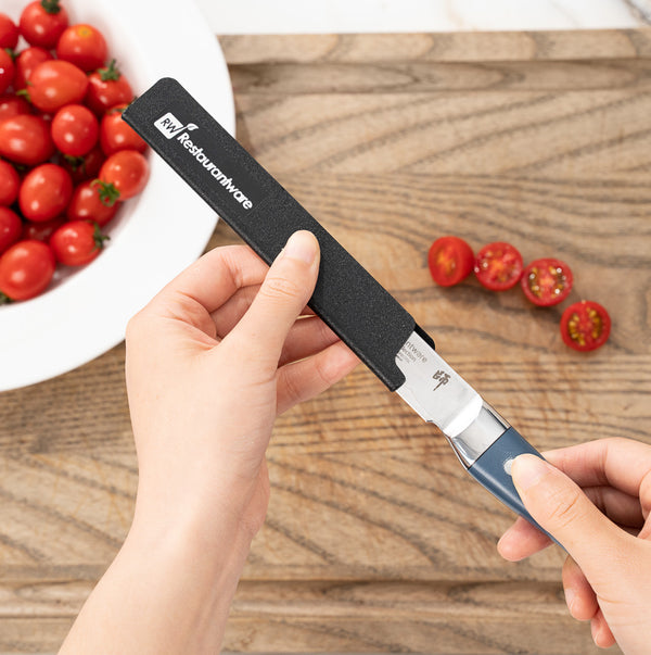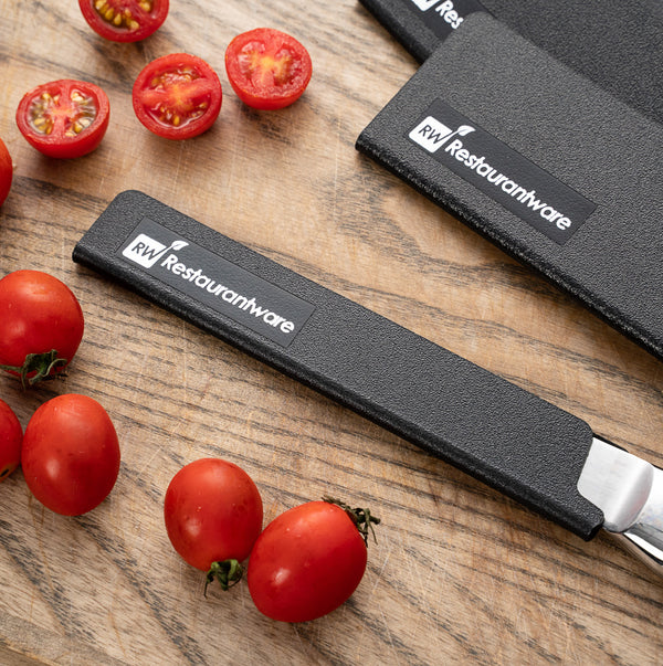 These plastic knife covers are designed to perfectly fit our Sensei Steak Knives, ensuring secure storage and protection. It is an ideal accessory for properly storing your knives before any food preparation tasks.