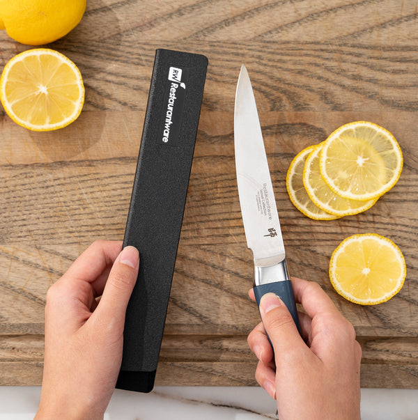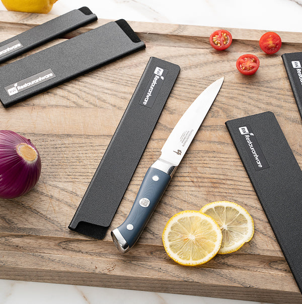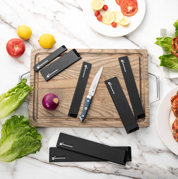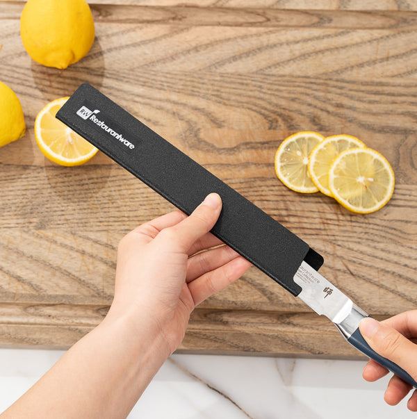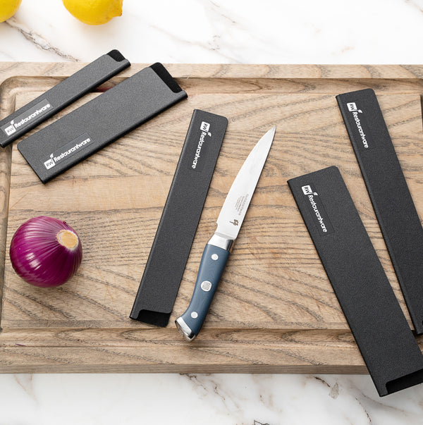These plastic knife covers are designed to perfectly fit our Sensei Steak Knives, ensuring secure storage and protection. It is an ideal accessory for properly storing your knives before any food preparation tasks.