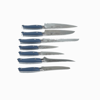 These kitchen knives feature a German-inspired, G-10 triple-riveted handle and full tang structure, providing exceptional balance and control for effortless cutting. Designed for comfort, empowering you to master every kitchen prep task with ease.