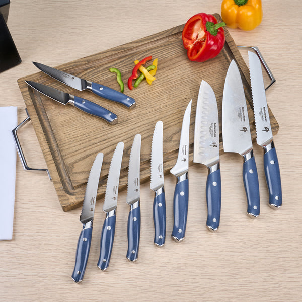 - 10-piece knife set for various culinary needs