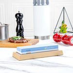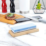 - Non-slip bamboo base keeps sharpener securely in place while in use