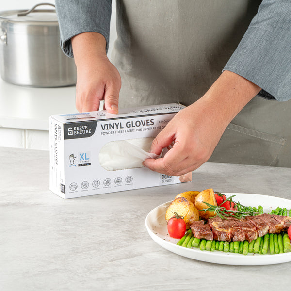 Ensure safety and reliability with these disposable gloves. Serve Secure Latex-Free Disposable Gloves offer tactile sensitivity and are crafted from premium quality plastic, providing durability and reliability in foodservice settings. With no latex protein, these vinyl gloves prevent allergic reactions, ensuring customer safety during food prep. Their higher tensile strength allows secure handling of ingredients, making them ideal food handling gloves for busy kitchens. The clear plastic design measures 9.05 inches in length and 4.53 inches in width, ensuring a comfortable fit while maintaining flexibility and control. Perfect for environments requiring frequent glove changes, these gloves simplify operations and enhance hygiene protocols. Enhance your foodservice operations with these indispensable gloves. Each order includes 1000 Serve Secure Latex-Free Disposable Gloves.