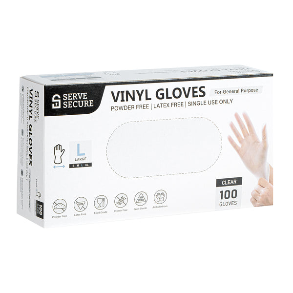 Serve Secure Clear Large Vinyl Gloves - Powder-Free, Latex-Free - 9