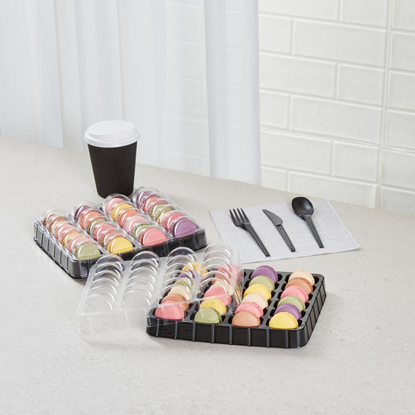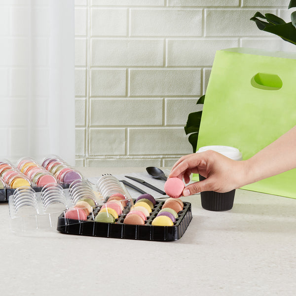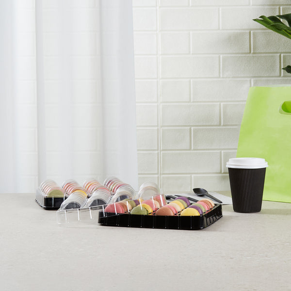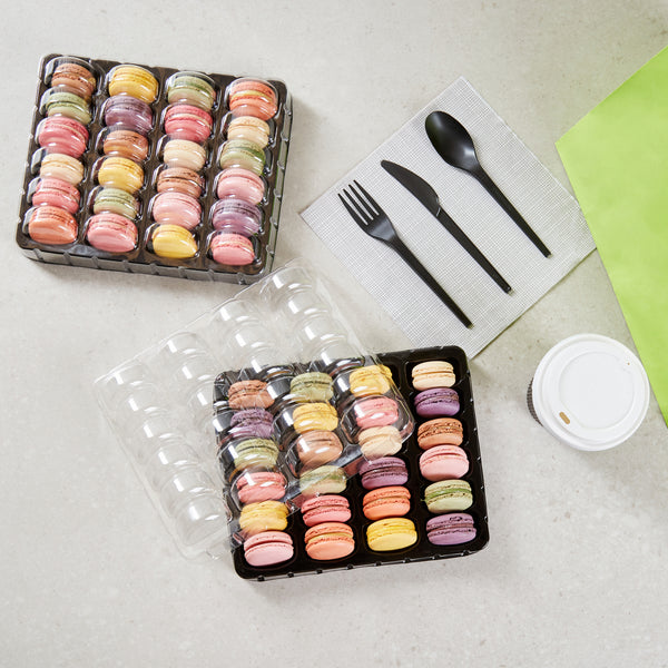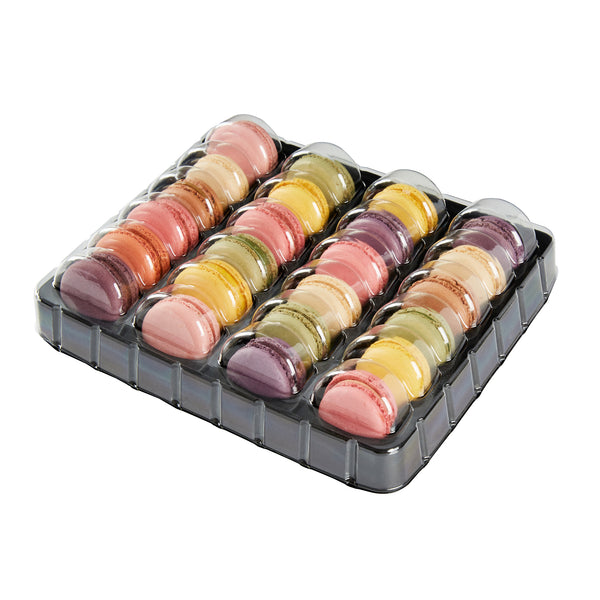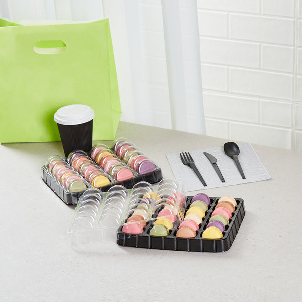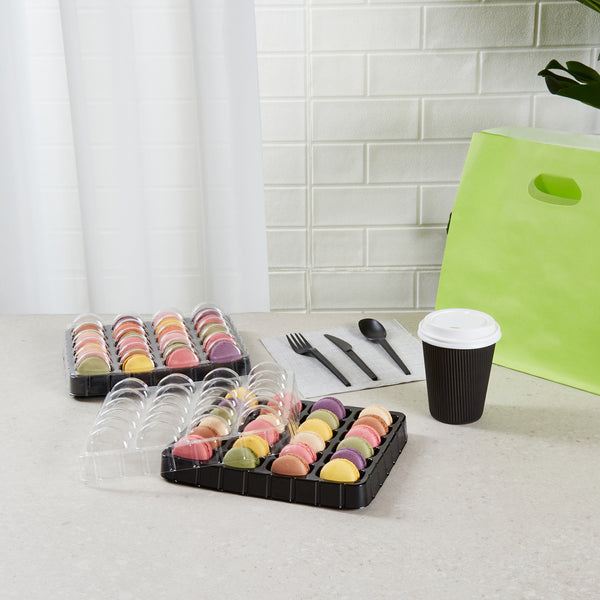 SHOCK SAFE BLACK PLASTIC MACARON TAKE OUT BOX - FITS 24 MACARONS