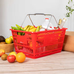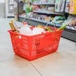 Keep your store running smoothly with the Shop Tek Red Plastic Grocery Market Shopping Basket. Designed from durable plastic, it stands up to constant use while maintaining its lightweight feel. The spacious interior, measuring 19.29 inches by 12.99 inches by 9.25 inches, easily accommodates groceries, household items, or market goods, making it practical for a wide range of retail settings. Strong steel handles provide lasting support and a steady grip, even when carrying heavier loads. Its stackable structure reduces clutter and maximizes storage space when baskets are not in use. The bold red finish not only adds a vibrant touch but also makes baskets easy for customers to spot quickly. Ideal for everyday use in supermarkets, convenience stores, or farmers’ markets, this basket offers durability, functionality, and convenience in one. Each order includes 1 Shop Tek Plastic Shopping Basket.