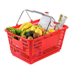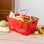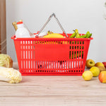 RED PLASTIC GROCERY MARKET SHOPPING BASKET - WITH STEEL HANDLES