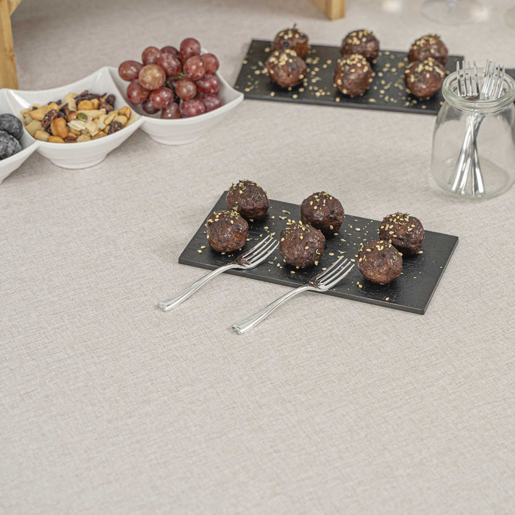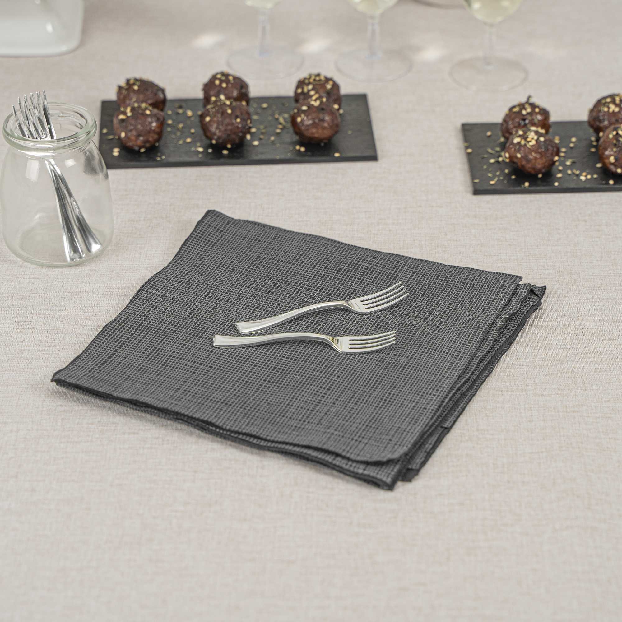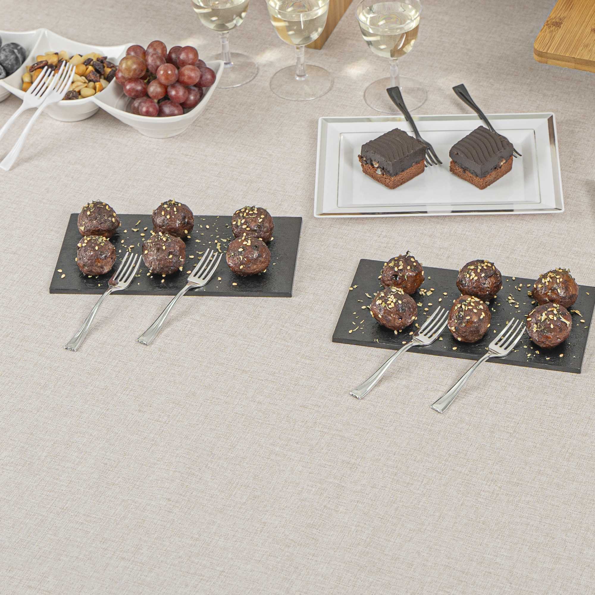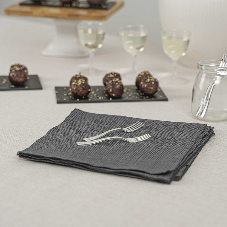 Elevate the look of your table setting with our Mini Serve Silver Plastic Mini Forks. Featuring a shiny silver finish, these silver plastic forks are designed to effortlessly enhance the presentation of your tantalizing dishes. With their strong and sturdy handles, these cake forks are built to stand up to hefty bites of polenta and big scoops of gelato. Made from premium plastic, these appetizer forks are conveniently disposable and recyclable, making them a perfect flatware option for eco-conscious cafes, venues, and clients. Measuring 4 inches in length, these single-use forks are the ideal size to accompany miniature tuna tartare or personal-sized strawberry shortcakes. Shipped in a 500 count box.