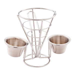 SILVER STAINLESS STEEL SINGOLO CONE STAND - 2 SAUCE HOLDERS