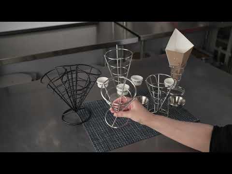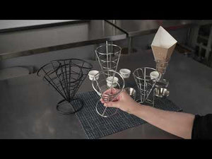 Create an engaging serving experience with our Cone Tek Silver Stainless Steel Singolo Cone Stand. Manufactured from supreme stainless steel, this cone stand is built for durability and lasting use. This cone stand features a single slot to hold a cone, accentuating your presentation. Designed to save space, this silver cone stand provides a classy and organized display without occupying much room. The stylish appearance and firm base make this durable cone stand ideal for hotels, restaurants, and cafes. For a seamless cleaning process, this snack cone stand is dishwashable. Measuring 4 inches in diameter by 5.5 inches in height, its compact size effectively presents your creations. The silver color of this stainless steel fry holder seamlessly integrates with any table setting or decor. Shipped in a 1 count box.