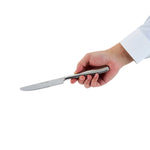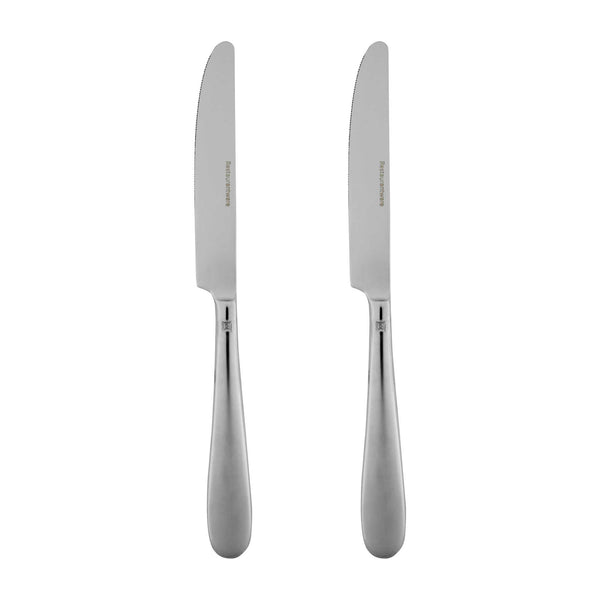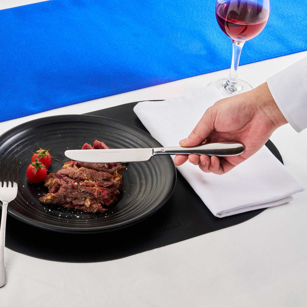 Experience superior cutting performance with our Sovereign 13/0 Stainless Steel Table Knives. Crafted from premium stainless steel, these table knives boast an extraordinarily sharp blade for precise slicing and dicing. The ergonomic handle of these knives provides user comfort and effortless cuts, while the sophisticated design adds elegance and versatility to any dining setting. These 9.25-inch dinner knives are not just built for function but exude class as well. Plus, these table knives are dishwashable for easy cleaning and upkeep while retaining their shine, ready for the next feast. These stainless steel table knives are the ideal table steak knife for slicing a juicy steak or serving up homemade bruschetta. Measuring 9.25 inches in length, these sharp knives are ideal for your meal presentation. Sold in a 2 count box.