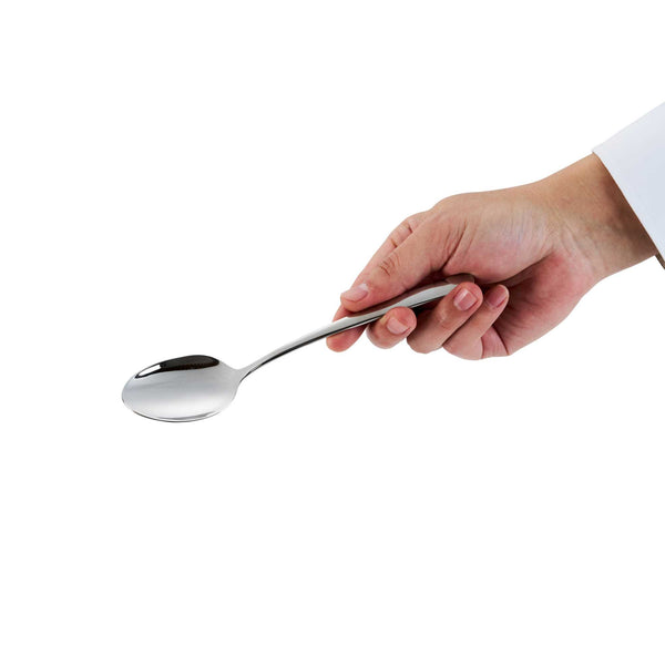 Provide the perfect finishing touch for your tableware with these Stainless Steel Dessert Spoons from our Speculo Flatware Collection. Combining modern design with curved lines, this high quality silverware enhances any occasion with a sense of refined luxury. Our Speculo Collection of heavy weight flatware is constructed from high grade 18/10 stainless steel. Featuring a striking high-shine mirror finish, these dessert spoons instantly brighten up any place setting or tablescape. Ideal for use as commercial flatware, these sleek spoons are dent-resistant, corrosion-resistant, and dishwasher-safe. Each of these dessert spoons measures 7 inches in length. Sold in a 2 count box.