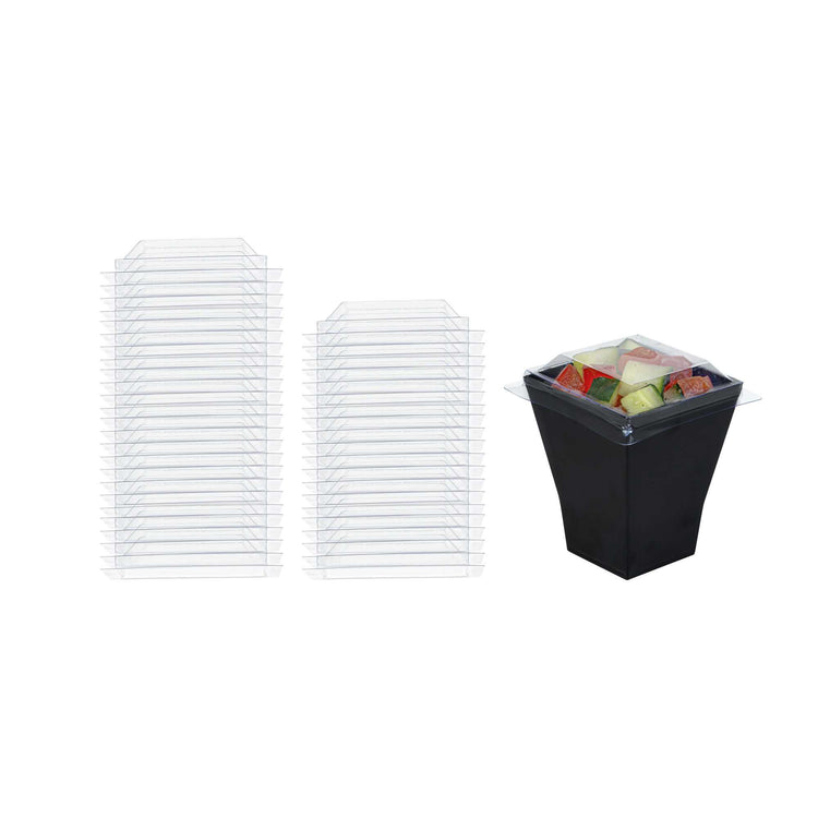 Secure your delicate desserts with our Mini Serve Square Clear Plastic Lids. These small plastic lids were created to precisely fit our Mini Serve Bonito Cups (SKU: RWP0032B, RWP0032G). Constructed from premium plastic, these small clear lids are firmly locked onto our Mini Serve Bonito mini dessert cups. Featuring a crystal clear finish and a square modern design, these small food containers stylishly protect your miniature appetizers, desserts, and more. Complete our Mini Serve Bonito Collection of plastic cups with these lids to safely serve tasty treats at your cafe, buffet, or catered event. These plastic lids measure 1.75 inches long by 1.75 inches wide. Sold in a 100 count box. Matching cups are available and sold separately.