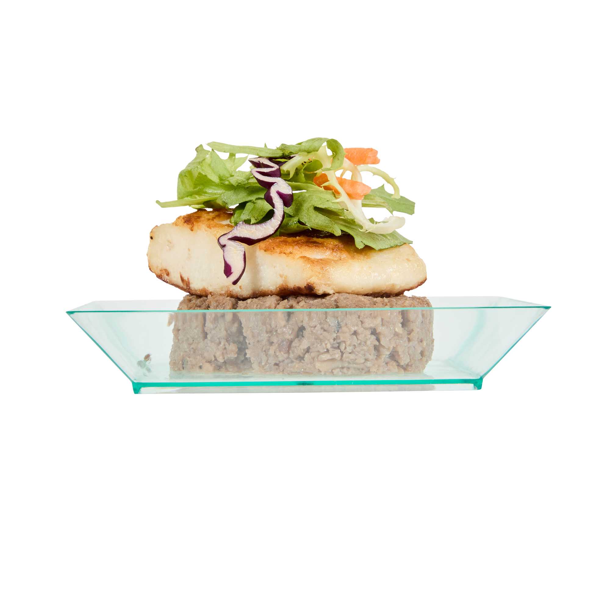 - Sleek seagreen finish enhances food presentation