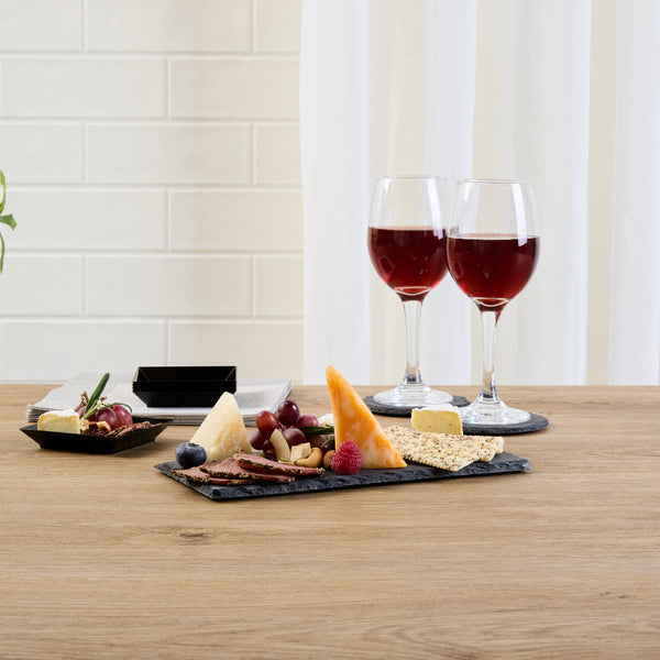 Enhance your tableware with versatile slate presentations. The Stone Tek Rustic Appearance Rectangle Slate Tray combines natural, cut edges with foam feet for a scratch-resistant surface, perfect for any rectangle slate tray setup. Measuring 9.84 inches in length and 4.72 inches in width, this slate cheese board is ideal for serving an array of cheese and charcuterie, providing a rustic yet elegant backdrop. Made from pure slate, this black slate platter withstands both hot and cold temperatures, offering flexibility for varied menu offerings. The foam feet safeguard your table surfaces, ensuring your display remains pristine, while the natural slate material lends an authentic touch to your dining experience. Add a touch of sophistication to your tabletop with this essential hospitality item. Each order includes 4 Stone Tek Rustic Appearance Rectangle Slate Trays.