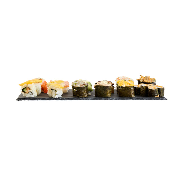 Enhance your culinary presentation with versatile slate charcuterie boards. The Stone Tek Rustic Slate Charcuterie Board features a natural slate material that provides a rustic and elegant appearance to elevate the visual appeal of your dishes. Its generous 15.75-inch by 7.87-inch rectangular design offers ample space for arranging appetizers, cheeses, or desserts, making it an ideal rustic serving board for any occasion. Equipped with foam feet, this slate board protects countertops and table surfaces from unsightly scratches, ensuring longevity in busy foodservice environments. Its non-porous surface resists liquid absorption, simplifying cleaning and maintaining hygiene standards, while its heat-resistant properties withstand both hot and cold items, offering diverse serving options for chefs and caterers. Elevate your dining experience with this essential tableware piece. Each order includes 1 Stone Tek Rustic Slate Charcuterie Board.