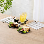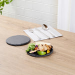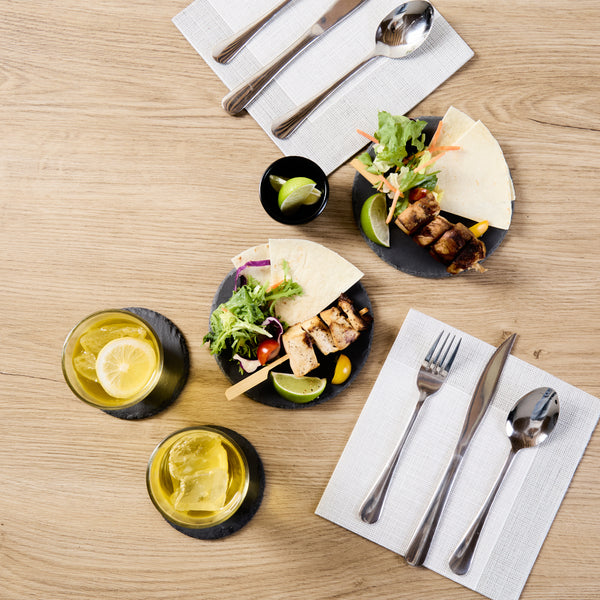 Enhance your tabletop presentations with rustic elegance. The Stone Tek Rustic Slate Platter offers a 5.91-inch square serving surface crafted from natural slate, providing a unique and authentic appearance for cheese and charcuterie boards. Its ability to withstand both hot and cold temperatures makes this slate platter ideal for diverse plating applications, ensuring versatility across various culinary creations. Foam feet safeguard tabletops from scratches, allowing seamless service in bustling environments, while the natural cut edges add a rustic texture that elevates the visual appeal of any dining setting. This charcuterie serving plate features a non-porous surface that resists liquid and odor absorption, maintaining hygiene and facilitating easy cleaning. Elevate your foodservice offerings with this versatile cheese serving board. Each order includes 10 Stone Tek Rustic Slate Platters.