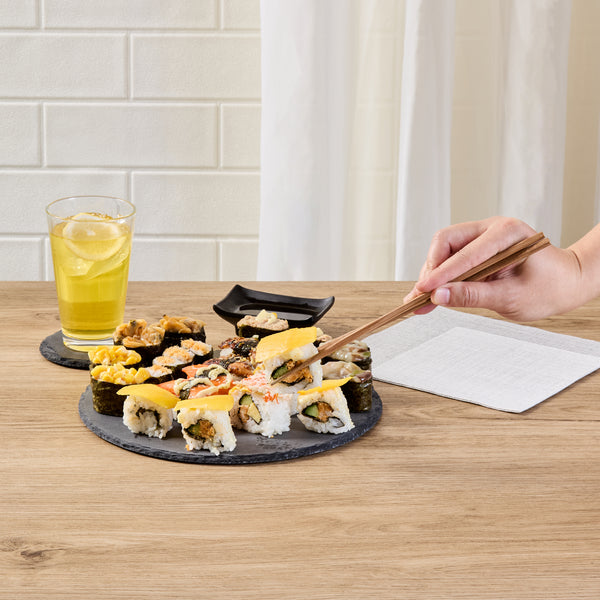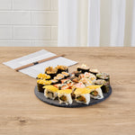 Elevate your presentation with authentic, rustic charm. The Stone Tek Rustic Slate Cheese Board showcases a natural slate construction that withstands both hot and cold foods, offering superior versatility for serving cheese or charcuterie assortments. This slate cheese board is designed with foam feet to protect table tops and counters from unsightly scratches, ensuring a seamless and professional display in your dining or catering settings. The natural edges add a textured elegance to table arrangements, enhancing the visual appeal of your offerings. Measuring 9.84 inches by 9.84 inches, this black stone plate is dishwasher safe, combining ease of maintenance with sustainability. Perfect for casual and formal occasions alike, this round slate dish enriches any culinary presentation with its unique slate material and sleek black color. Each order includes 4 Stone Tek Rustic Slate Cheese Boards.