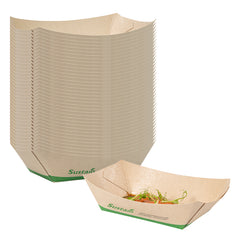 Effortlessly serve and showcase your culinary creations with our Sustain Leak-Resistant Kraft Disposable Food Boat. Designed with a PLA lining, this disposable food boat prevents leaks, ensuring clean and efficient foodservice operations. Crafted from durable paper, it resists bending, maintaining the integrity of sampler presentations in any setting, whether at a bustling food truck or a catered event. Emphasizing sustainability, the boat's commercially compostable design aids in eco-friendly waste management, making it an ideal choice for businesses committed to reducing their environmental footprint. Measuring 4.2 inches in length, 2.7 inches in width, and 1.6 inches in height, this kraft-colored bamboo paper boat combines practicality with an attractive presentation. Upgrade your serving trays with these compostable serving trays and enjoy seamless service. Each order includes 400 Sustain Leak-Resistant Kraft Disposable Food Boats.