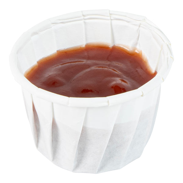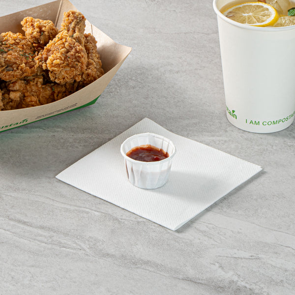 Elevate your foodservice with our Sustain 1.25-ounce White Paper Portion Cups. These paper condiment cups are commercially compostable and biodegradable, reducing your environmental footprint with every use. Made from premium paper, these durable ketchup cups can hold a variety of sauces including mustard, mayonnaise, and honey. These paper sauce cups are versatile and ideal for serving samples at events, tastings, and food promotions. The elegant white finish of these sauce cups enhances your food presentation, making your dishes stand out. Designed for hassle-free cleanup, these paper ketchup cups are disposable and can be easily tossed after use. These condiment cups measure 1.69 inches in diameter by 1.18 inches in height and have a capacity of 1.25 ounces. Sold in a 2,000 count box. These items will only degrade outside of the traditional solid waste stream.