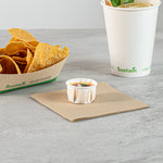 Enhance your foodservice with our Sustain 1-ounce White Paper Portion Cups. These paper condiment cups are commercially compostable and biodegradable, providing a sustainable alternative to traditional plastic. Made from premium paper, these durable sauce cups are ideal for holding ketchup, mustard, mayonnaise, honey, and more. These paper ketchup cups are versatile and perfect for serving samples at events, tastings, and food promotions. The white finish of these paper sauce cups enhances your food presentation, making your dishes look even more appetizing. For hassle-free cleanup, these ketchup cups are disposable and can be easily tossed after use. Measuring 1.5 inches in diameter by 1 inch in height, these condiment cups have a capacity of 1 ounce. Sold in a 100 count box. These items will only degrade outside of the traditional solid waste stream.