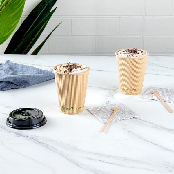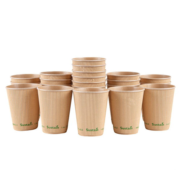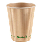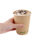 12 OZ KRAFT PAPER COFFEE CUP - PLA LINING, COMPOSTABLE, RIPPLE WALL
