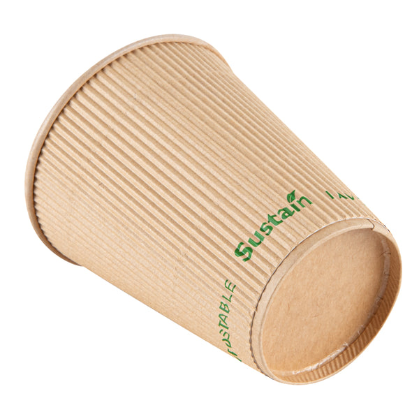 Enhance your eco-friendly drink service with these compostable coffee cups. The Sustain 12 oz Kraft Paper Coffee Cups offer a ripple wall design that provides exceptional heat insulation, allowing customers to enjoy hot beverages comfortably without the need for sleeves. Made from kraft paper, these cups align with sustainability initiatives, providing an environmentally conscious alternative to traditional cups. With a 12-ounce capacity, they are perfect for serving standard-sized coffee, tea, or other hot beverages, meeting customer expectations with ease. The moistureproof surface ensures liquids won't seep out, maintaining the cup's integrity throughout use. Perfect for coffee shops, these ripple wall coffee cups support a sustainable business model while offering a comfortable, non-slip grip. These insulated coffee cups are also freezer-safe, making them versatile for serving iced beverages and desserts. Each order includes 25 cups.