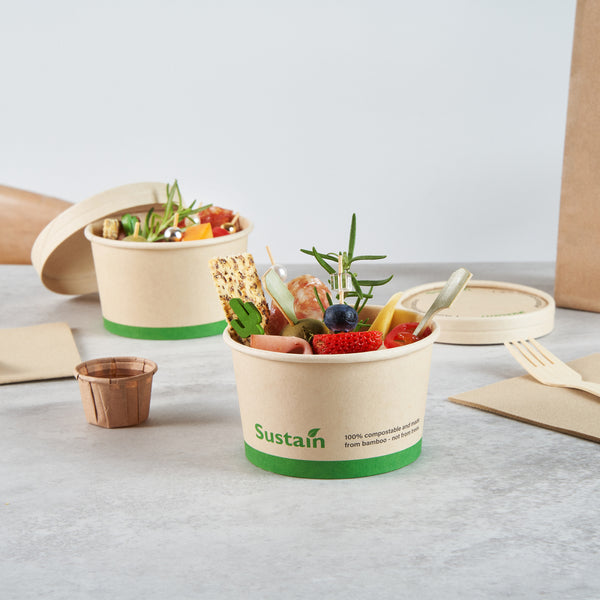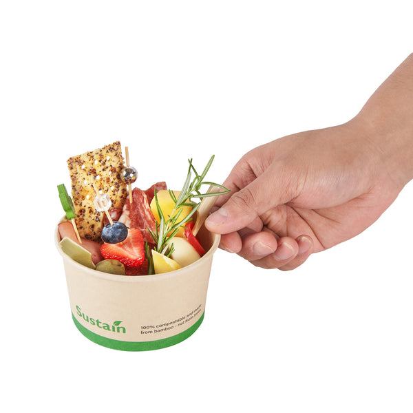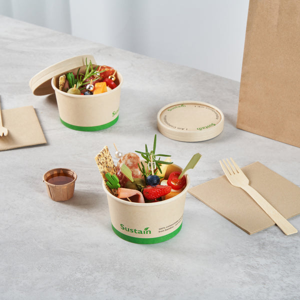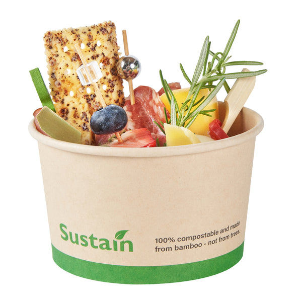 Ensure smooth operations with mess-free serving solutions. Sustain Kraft Leak-Resistant Paper Cups are expertly crafted with a PLA lining to prevent leaks, providing a dependable option for your 12 oz to go cups. These reliable cups feature a rolled rim that secures with lids, ensuring safe transport and reducing the risk of spills during service. Made from sustainably sourced paper, these bamboo paper cups are commercially compostable, supporting eco-friendly disposal practices in your establishment. Measuring 4.1 inches in both length and width, and 2.25 inches in height, these cups fit seamlessly into your operations while maintaining structural integrity. The kraft color enhances the natural aesthetic of your presentation, making them ideal compostable cups for environmentally conscious cafes. Upgrade your beverage service with these innovative and practical solutions. Each order includes 50 Sustain Kraft Leak-Resistant Paper Cups.