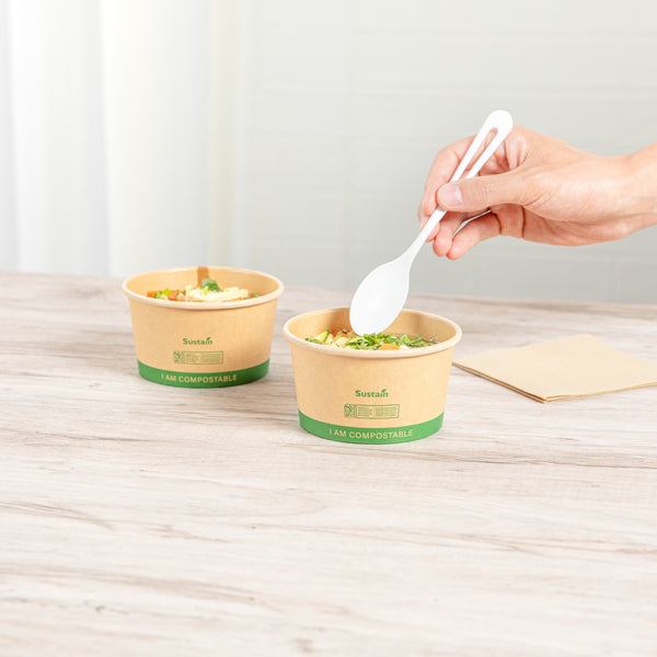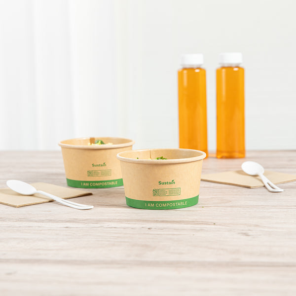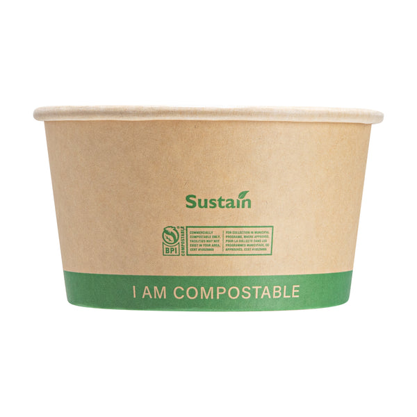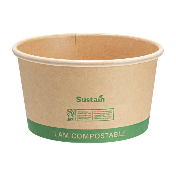 Elevate your foodservice offerings with our Sustain 12-ounce Round Kraft Paper Soup Containers, the perfect solution for eco-conscious establishments. These kraft soup containers are made from commercially compostable paper with BPI certitifcation, significantly reducing waste and minimizing your carbon footprint. Designed with a leak-resistant feature, this paper food cup prevents any messes, ensuring safe transportation of soups, stews, noodles, and more at any temperature. The durable construction of these takeout soup bowls makes them suitable for serving both hot and cold foods, providing versatility for your menu. Stackable and convenient, these to go food containers save valuable storage space in your kitchen. With a generous capacity of 12 ounces, these hot food paper cups measure 4.53 inches in diameter by 2.44 inches in height, perfect for hearty servings. Sold in a 25 count box.