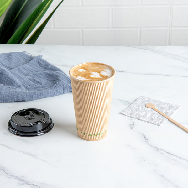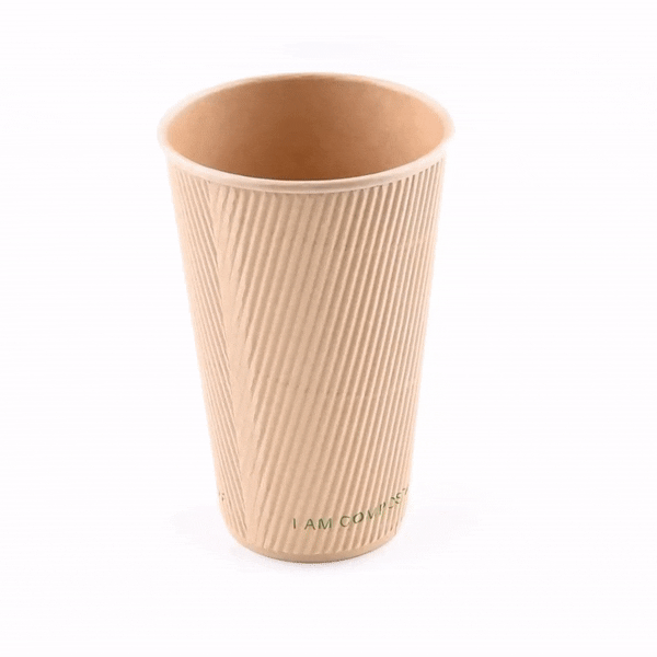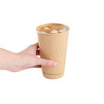 16 OZ KRAFT PAPER COFFEE CUP - PLA LINING, COMPOSTABLE, RIPPLE WALL