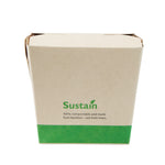 Ensure secure transport with leak-resistant bamboo paper containers. The Sustain Bamboo Paper Take Out Box with PLA lining prevents leaks for hassle-free transport, making it an ideal choice for busy foodservice environments. Designed with a tab-lock closure, this kraft paper food container maintains meal integrity during delivery, ensuring your culinary creations arrive intact. With its commercially compostable paper, this disposable noodle box supports eco-friendly disposal, aligning with sustainability initiatives without compromising performance. Its 3.6-inch by 3-inch by 3.3-inch dimensions offer ample space for 16-ounce servings, perfect for noodle-based dishes. Made from durable bamboo paper, providing versatility for both cold and hot meals. Elevate your takeout service with a nod to environmental responsibility by choosing this reliable, greaseproof solution. Each order includes 50 Sustain Bamboo Paper Take Out Boxes.