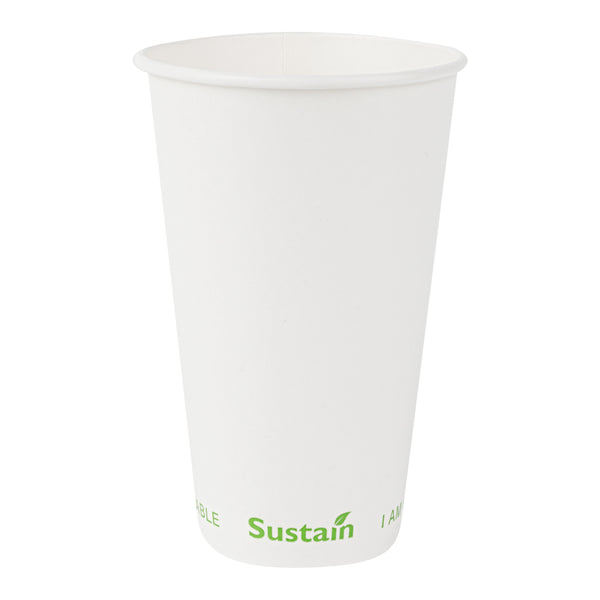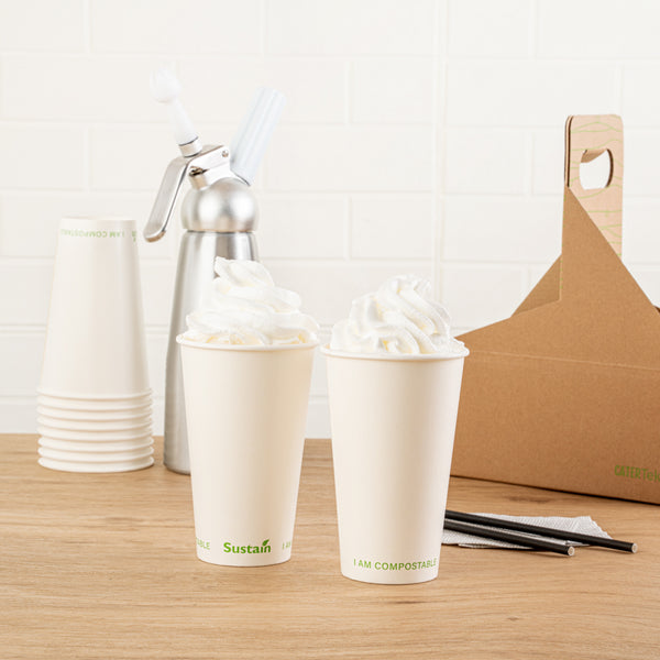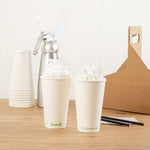 Boost sustainability efforts with our eco-conscious drinkware. The Sustain 16 oz Leak-Resistant Compostable Cold Cup – White Paper, 3.54 inches by 5.39 inches, is crafted from durable paper with a PLA lining, ensuring it stands up to cold beverages without leaking. This 16-oz compostable cold cup is ideal for quick-service restaurants aiming to reduce their environmental footprint. The compostable paper cold cup supports eco-friendly foodservice operations, offering a biodegradable solution for serving iced coffees or smoothies. Invest in this biodegradable cold drink cup to enhance your establishment's sustainability initiatives while providing reliable service. Each order includes 50 Sustain 16 oz Leak-Resistant Compostable Cold Cups.