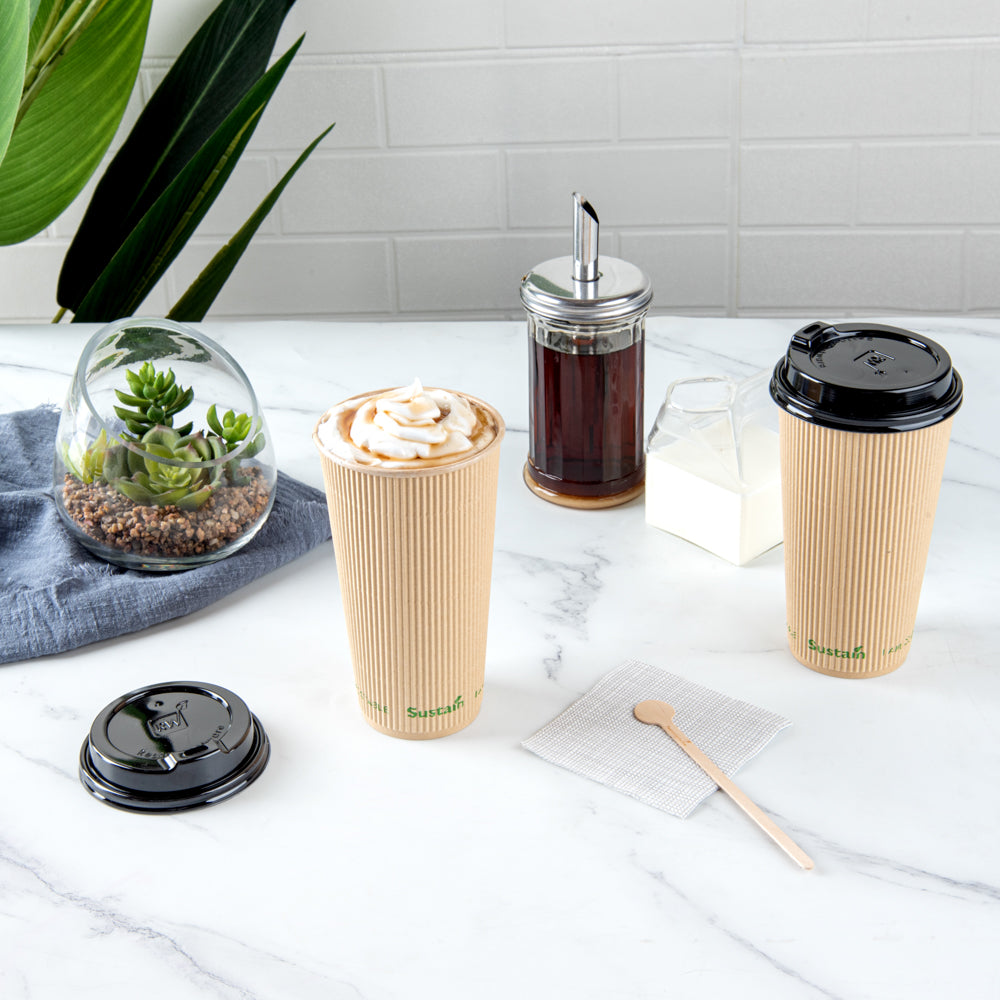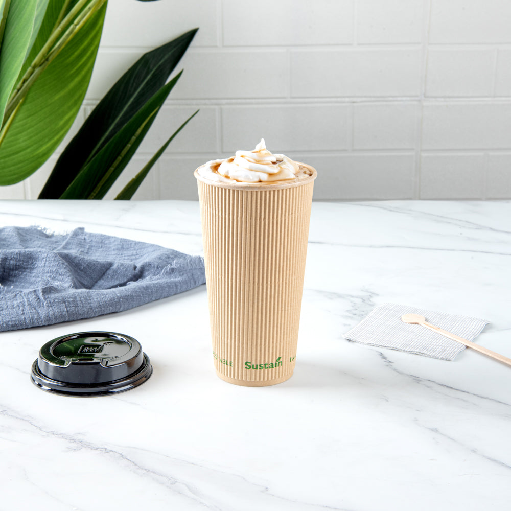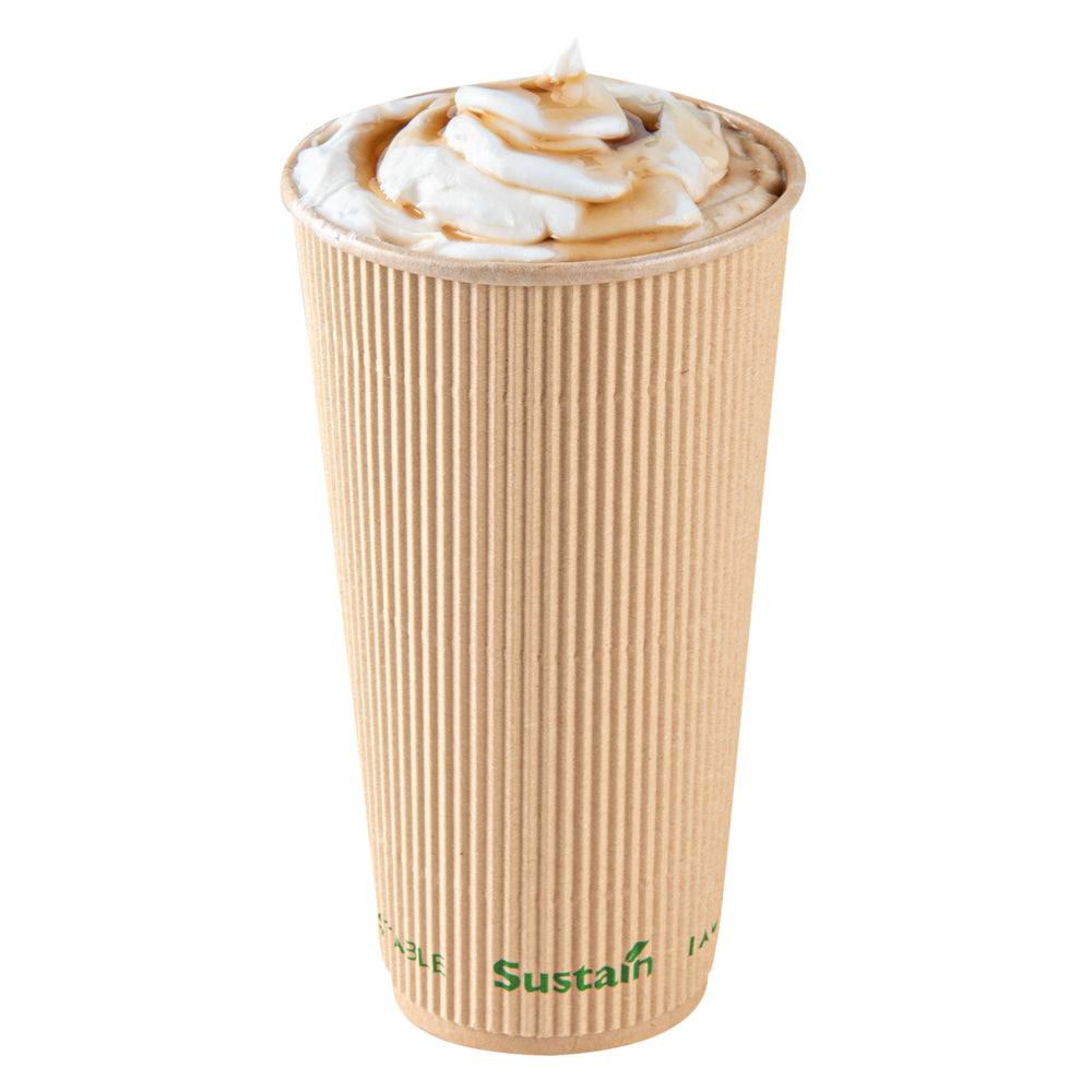 Sustain 20 oz Kraft Paper Coffee Cup - PLA Lining, Compostable, Ripple Wall - 3 1/2
