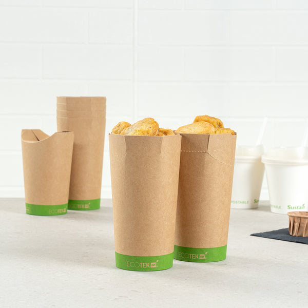 20 OZ ROUND KRAFT PAPER TO GO FRY CUP - WITH PLA LINING, COMPOSTABLE