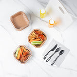 These disposable kraft food containers are highly versatile and suitable for hot and cold foods, offering reliable performance across a wide range of temperatures. Serve stews, noodles, salads, chilled desserts, and more!