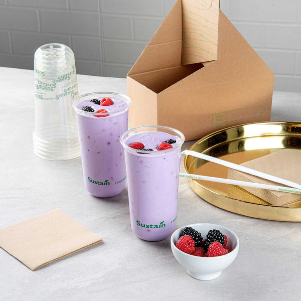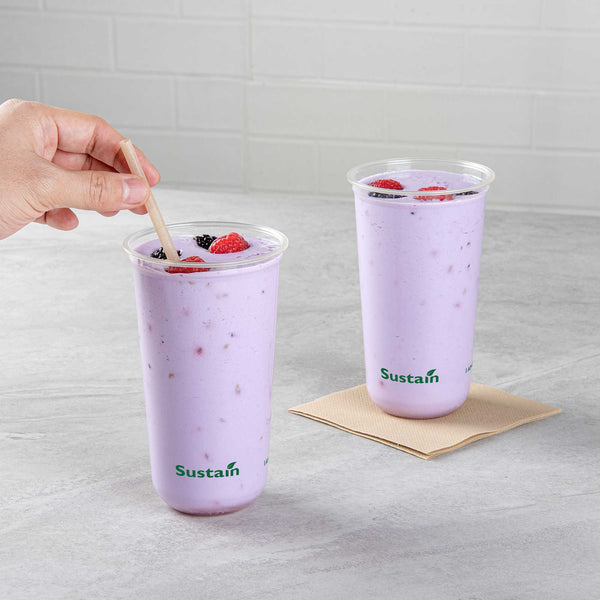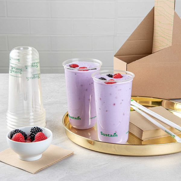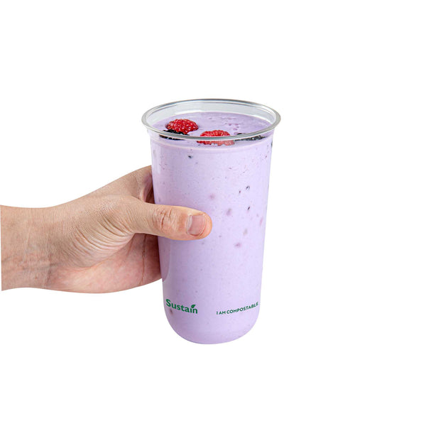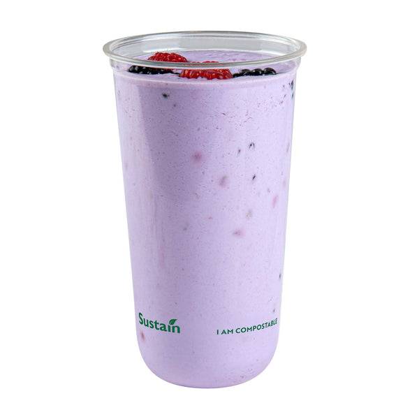 Enjoy cold beverages with our Sustain 24-ounce U-Shape Clear PLA Plastic Drinking Cups. Crafted from BPI Certified PLA plastic, these drinking cups compost efficiently in industrial settings without harmful residue. With a sleek U-shape design, these plastic cups provide a secure hold for better sipping. The rolled rim on each cup supports uninterrupted flow for an enhanced drink experience. Designed for busy lifestyles, these clear cups are perfect for picnics or events. Ideal for refreshments, these 24-ounce cups let you enjoy every sip. BPA-free, these disposable cups keep drinks clean and odor-free. With dimensions of 3.5 inches in diameter by 6 inches in height, these biodegradable cups offer numerous drink-serving possibilities. Lids are available and sold separately. Sold in a 100 count box. These items will only degrade outside of the traditional solid waste stream. NOTE: Store and use under 105F. Avoid prolonged exposure to direct sunlight. Suitable for cold beverages only.